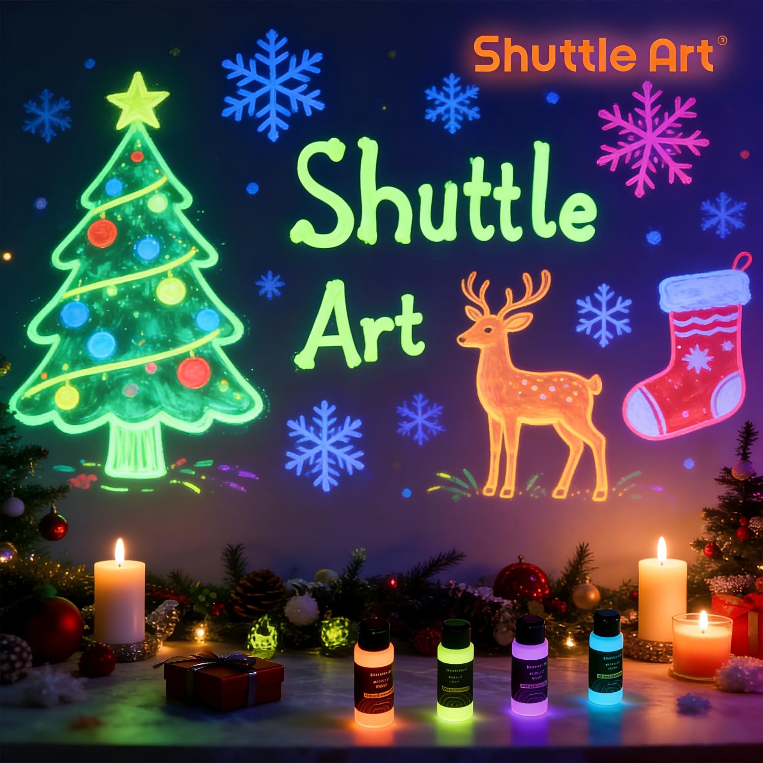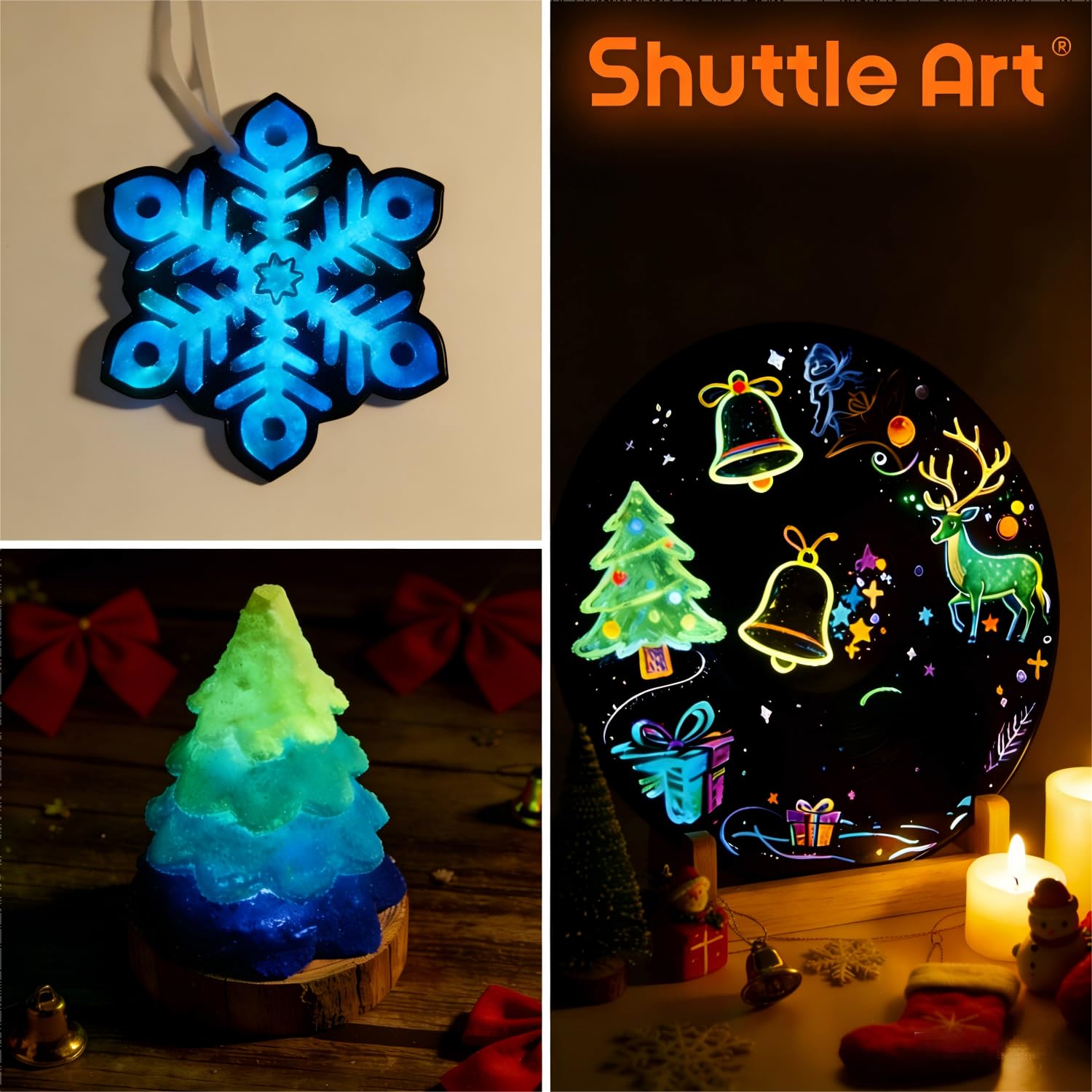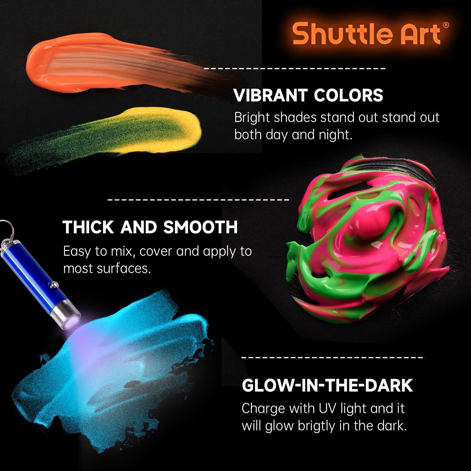 12 VIBRANT GLOW COLORS: Shuttle Art Glow in the Dark Acrylic Paint comes with 12 vibrant colors in 60 ml/2 oz bottles, also includes a user manual for beginners, perfect for various art and craft projects