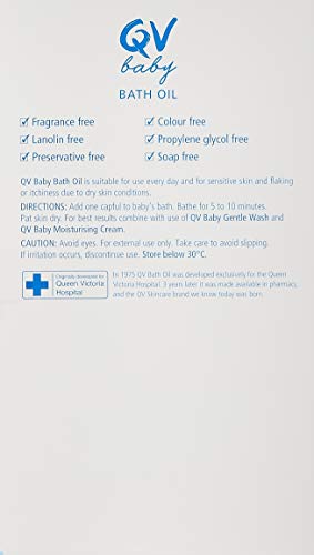 Baby bath oil: QV Baby Bath Oil is a gentle and moisturizing bath oil specially formulated for baby's delicate skin.