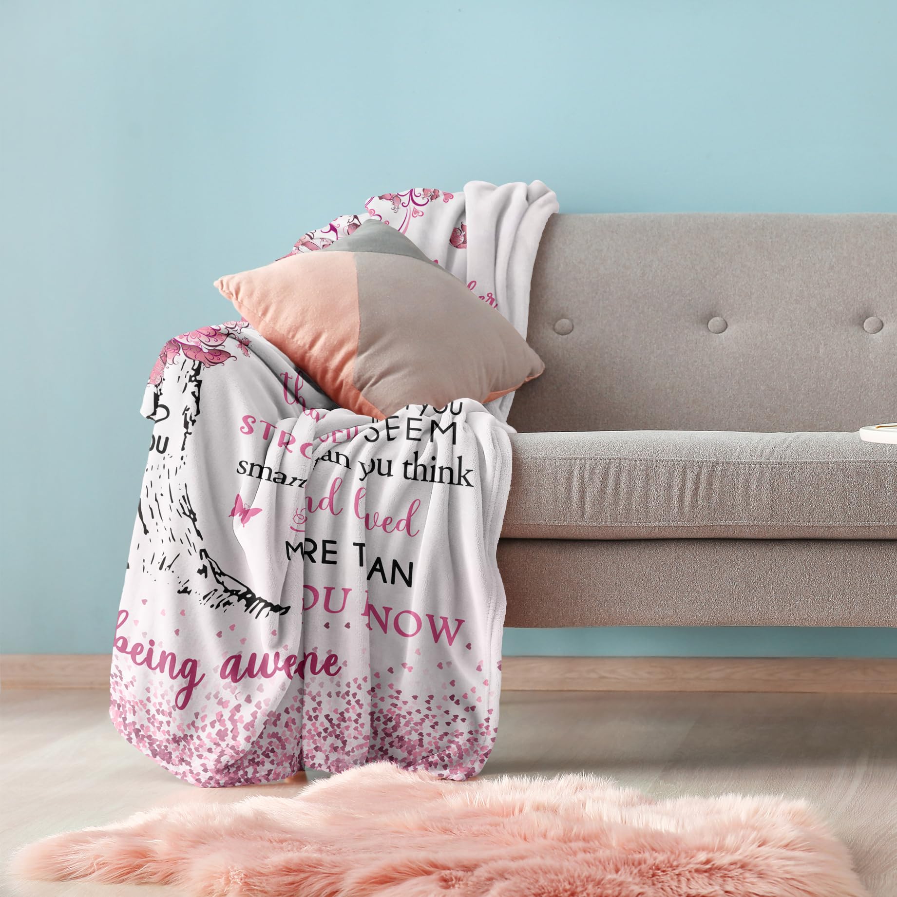 【Size】: The 50"X60" size is the most popular and is perfect for wrapping her in its cozy warmth throughout all seasons. It is suitable for use on the sofa, couch, bed, car or enjoying a moment of tranquility, this blanket is designed to provide comfort wherever she goes. It's compact and convenient, making it easy to use and store