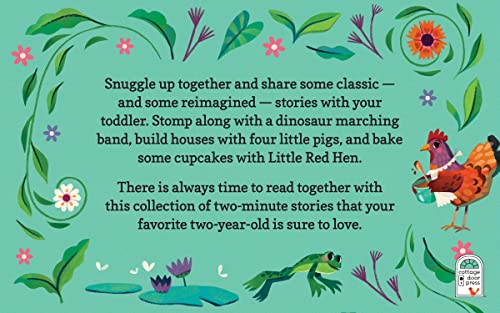 There's always time for a story! Two minutes to read-aloud and look at pictures makes this treasury perfect for quiet time or bedtime. Short little stories are just right for toddlers. Little Red Hen, Three Little Pigs, and even a Dinosaur story will engage your child or grandchild. This beautiful book is a keepsake for the family, and perfect for a 2-year-old birthday. Reading together makes memories! There is always time to read together with this collection of two-minute stories that your favorite two-year-old is sure to love. Includes classic stories, fairy tales, and new favorites such as Goldilocks, Four Little Pigs, Little Red Riding Hood, Dinosaur Marching Band, Little Dragon Goes Fishing, and more! Reading to your toddler encourages family interaction, helps to lengthen attention span, and supports comprehension and vocabulary growth. Each story only two minutes to read! Engage and entertain your little boy or girl with fun, enriching stories. Great gift for 2-year-old boys and girls for birthdays, holidays, and more!