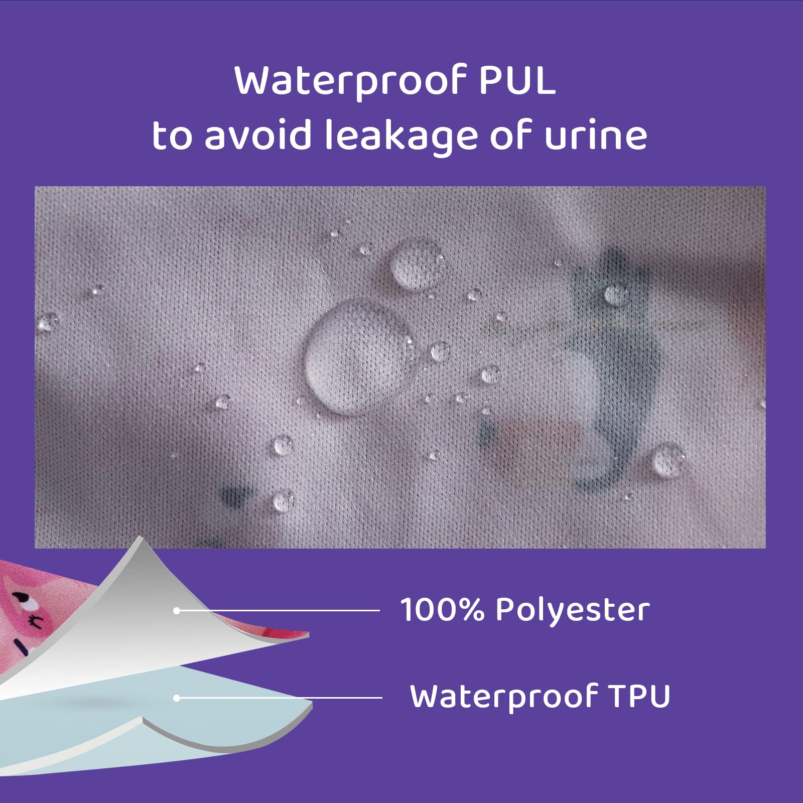 Waterproof and Elastic But Not Urine Absorption! - This training pants covers waterproof 2t was made of new polyester with waterproof layer, so our toddler plastic underwear 2t really waterproof, and also the fabric is elastic so your baby will feel comfortable. But friendly reminder, this product has no urine absorbing material, you can use it together with regular potty training pants, disposable diapers, underwear.