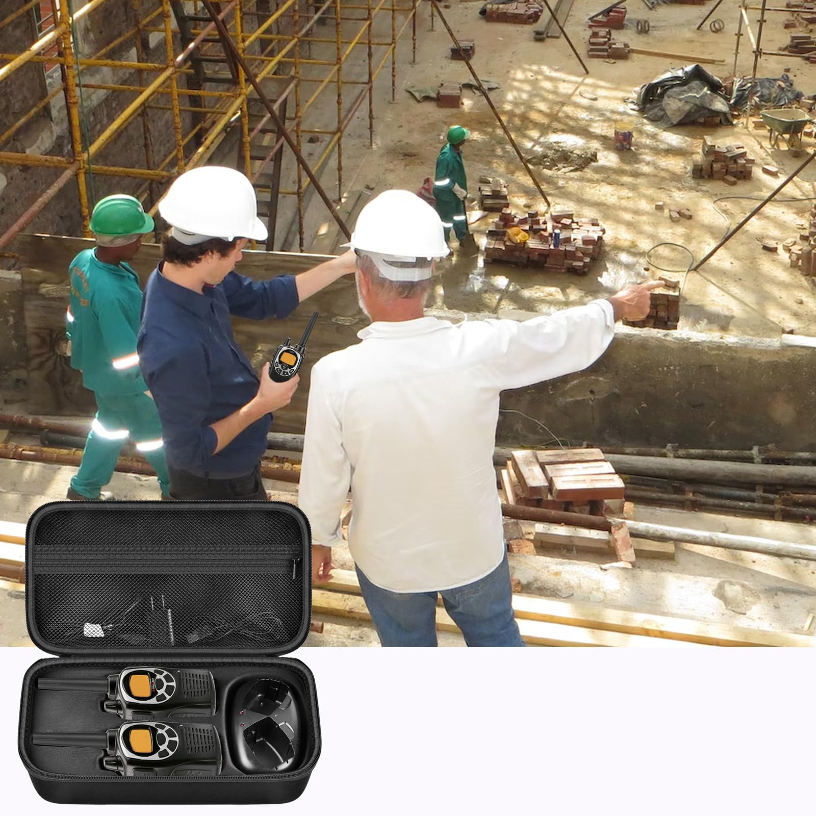 Protective handheld ham radio hard case: For radio holder is made of high-quality EVA material, splash-proof, crash-proof, anti-crush, prevent your cb radios long range for truckers from scratches and dust. The hard shell provides double protection for your valuables long range walkie talkies, effectively avoiding damage caused by shocks, bumps, drops, etc. rechargeable walkie talkies bag is convenient for you to use the long distance walkie talkies at any time