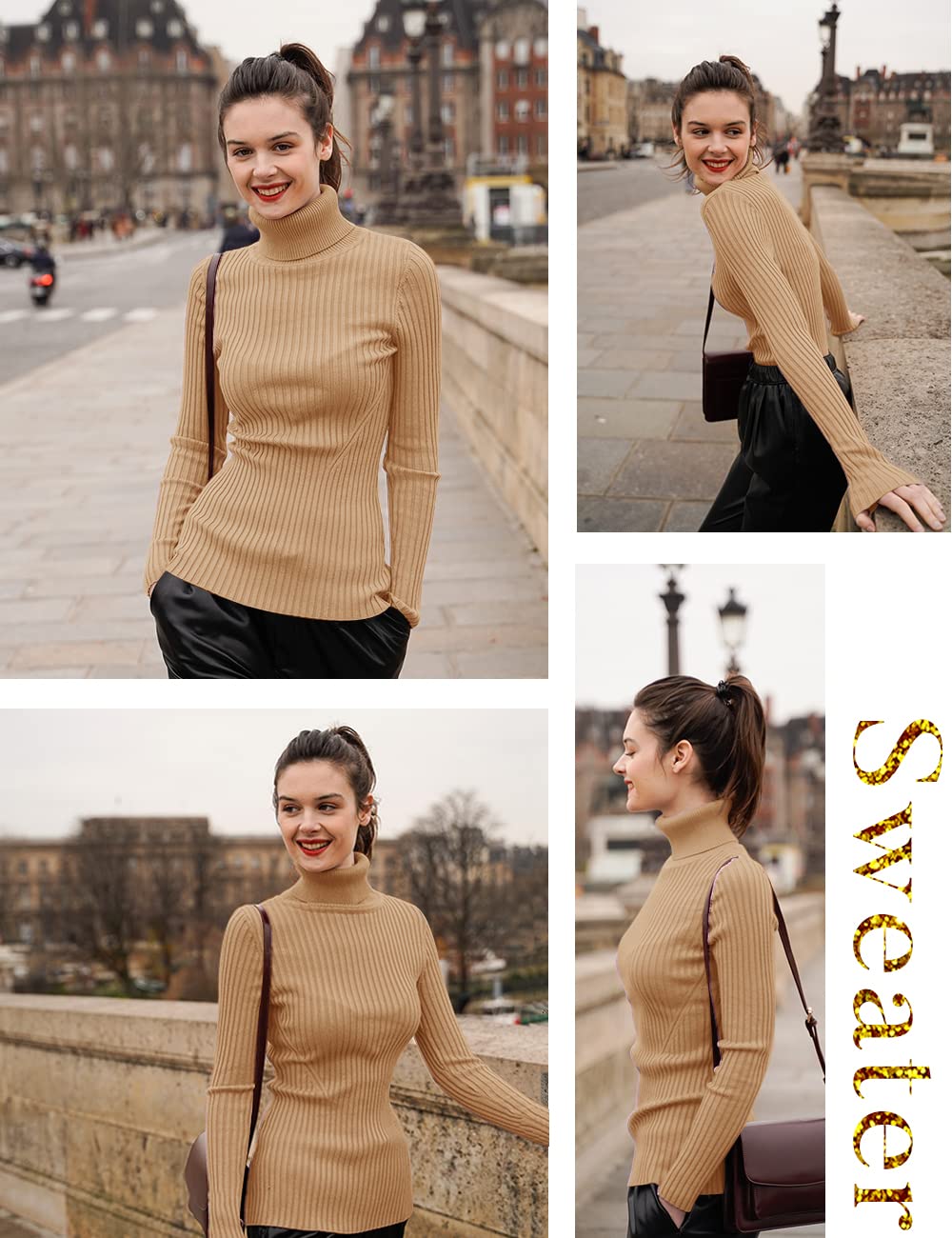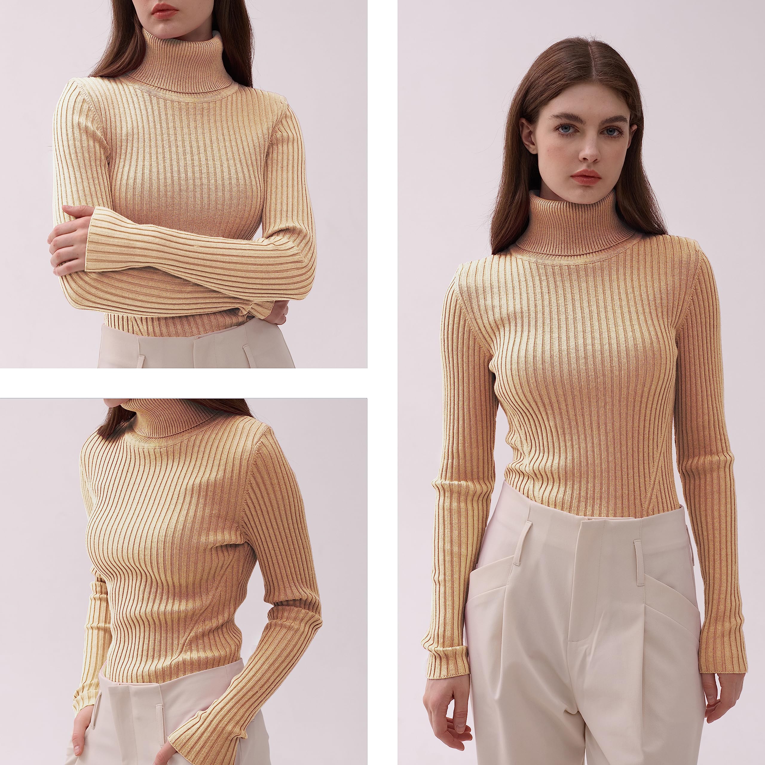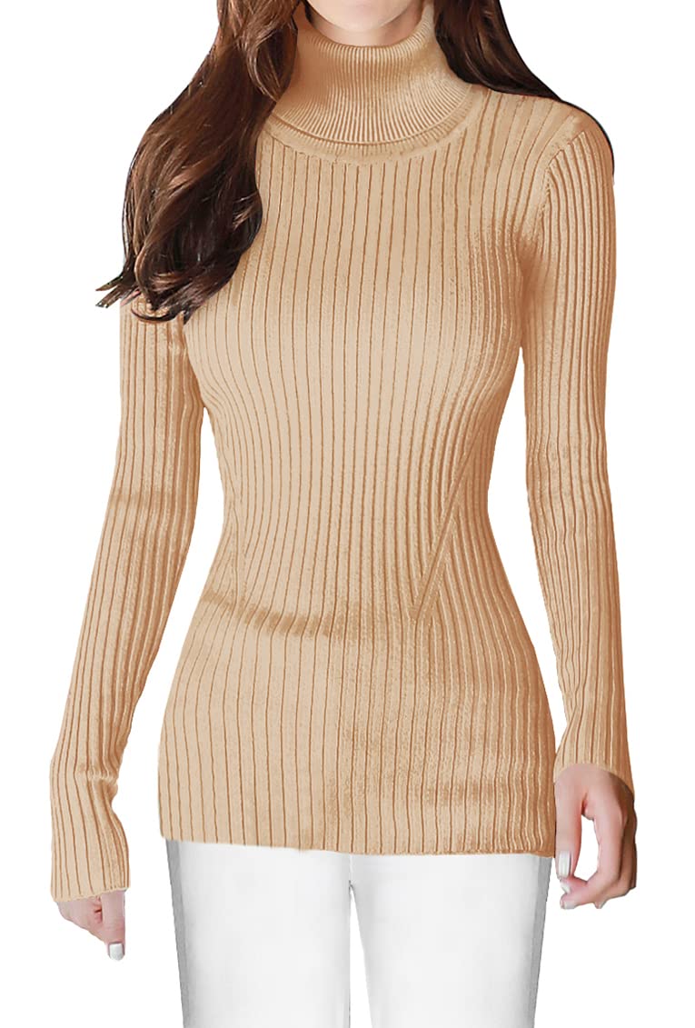 Turtle Neck Ribbed Sweater -- Knitted by Germany STROLL Machine to Ensure its High Quality Material: Highly Stretchable Viscose (Comfy Silky Smooth Feeling and Showing Off your Sexy Female Curve Silhouette)