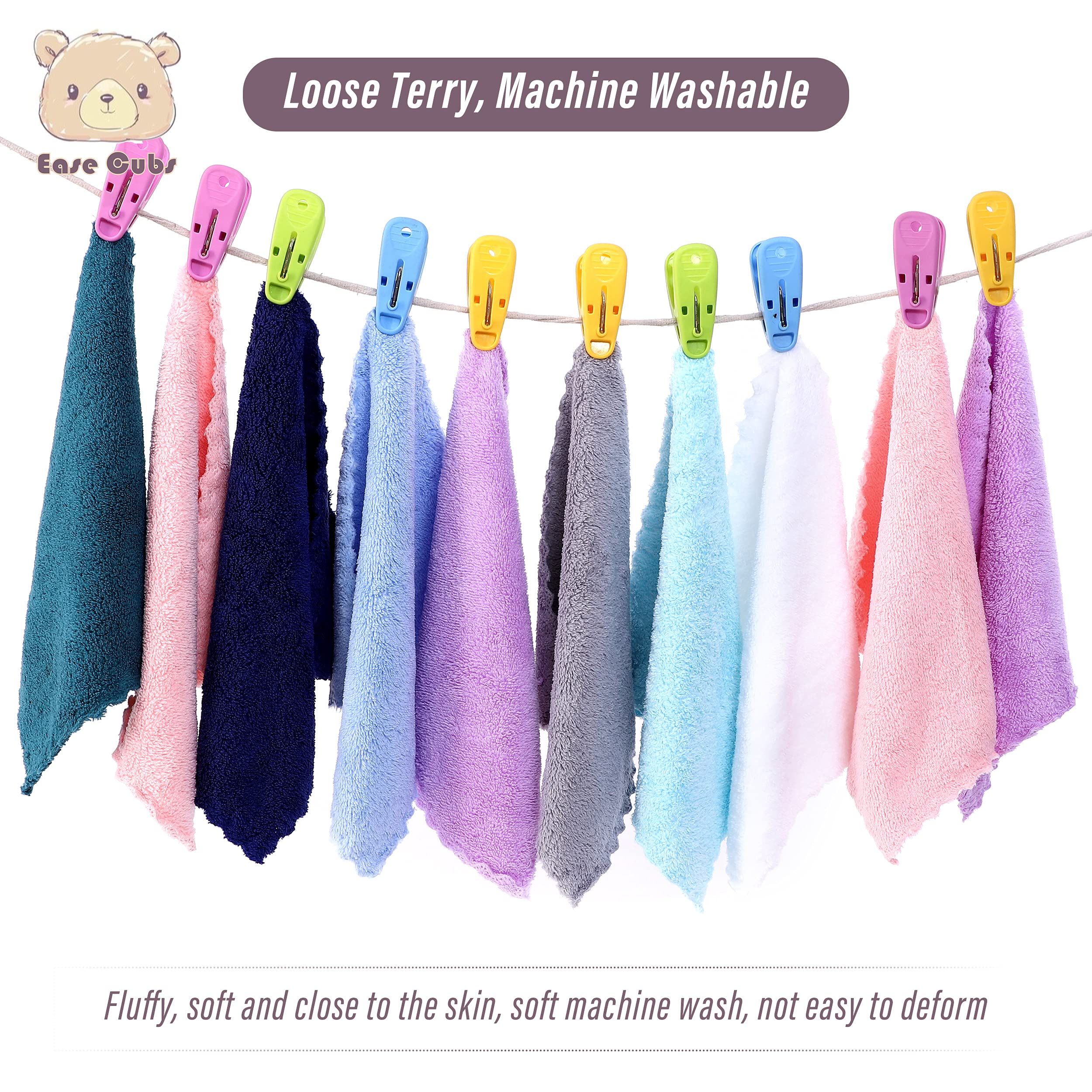 【24 Pack Washcloth Sets】 Size 8" by 8", can be used to distinguish the various uses: baby washcloths, baby wipes, absorbent towels, burp cloth, bath towels, baby showers / registration gifts, face cloths, makeup remover cloths.