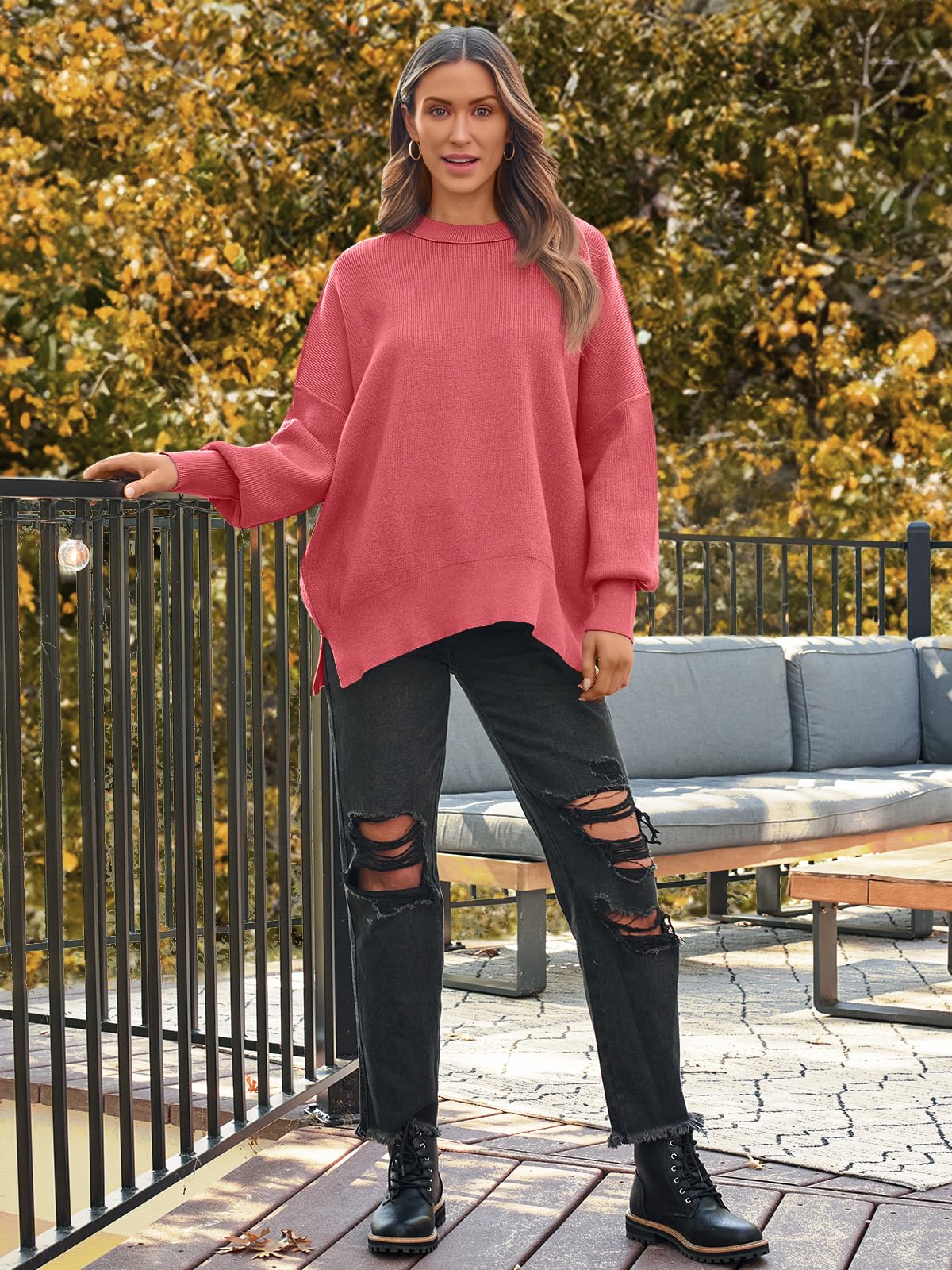 Great Features: UNIQUE OUTSIDE SEAM DESIGN, crewneck long sleeve sweater, tunic tops for leggings, fall and winter clothes, side split hemline, oversized design, vertical grain cuffs make it more chic