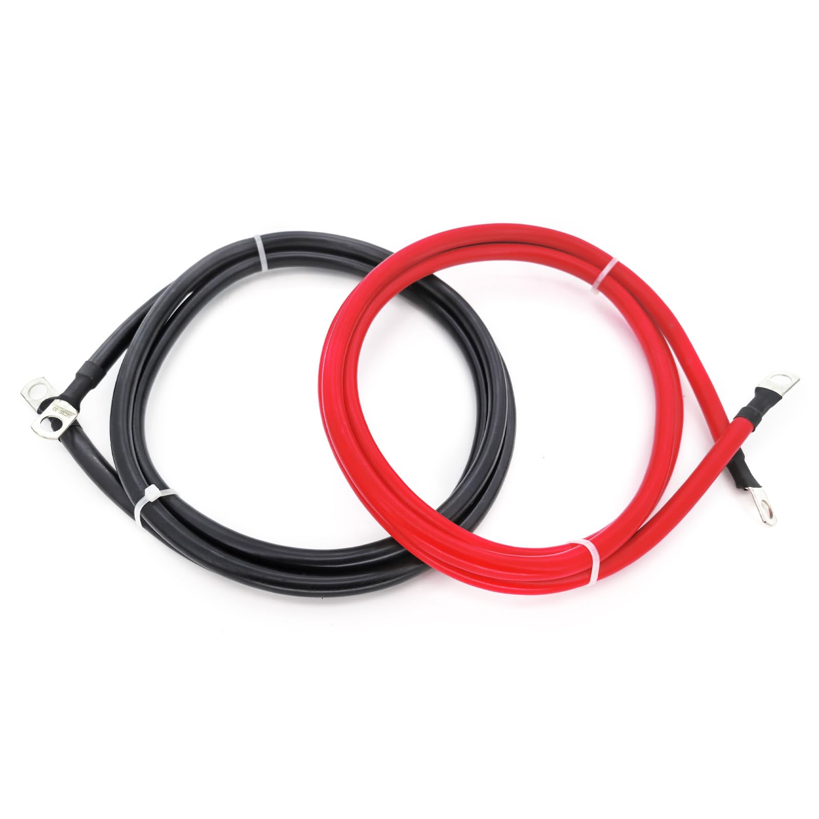 【Package Includes】With 2 AWG 5FT wire positive (Red) and negative (Black) copper battery cables, 3/8” ring terminal at each end.