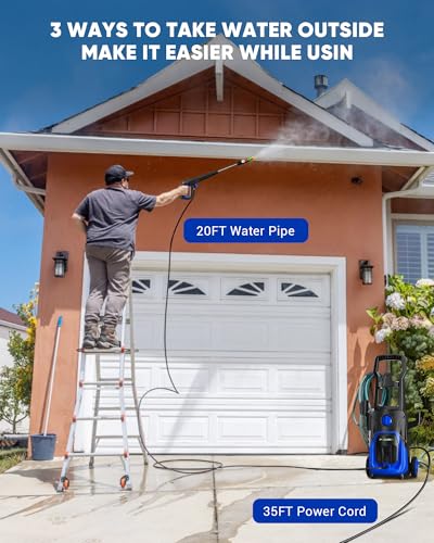 【Ultimate User Convenience】With a 35-foot power cord and a 26-foot hose, this pressure washer offers maximum flexibility and range, eliminating the need to frequently move the machine during use. The design prioritizes user convenience while delivering an exceptional and hassle-free cleaning experience.