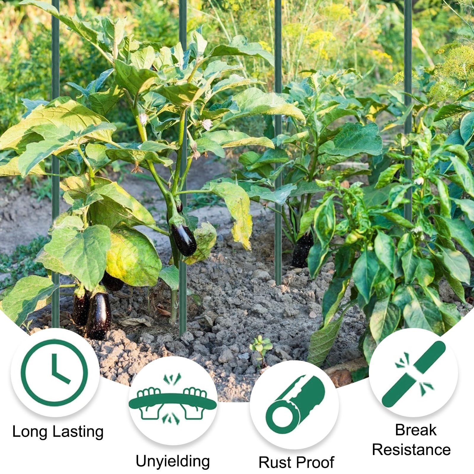 Wide Application:Tingyuan garden stakes are perfect for supporting medium and large plants. Ideal for eggplants, tomatoes, cucumbers, grapes, vines, poultry nets, and garden fences, these versatile plant stakes provide reliable support for outdoor plants. (Tip: Be sure to leave enough length in the soil for proper stability.)