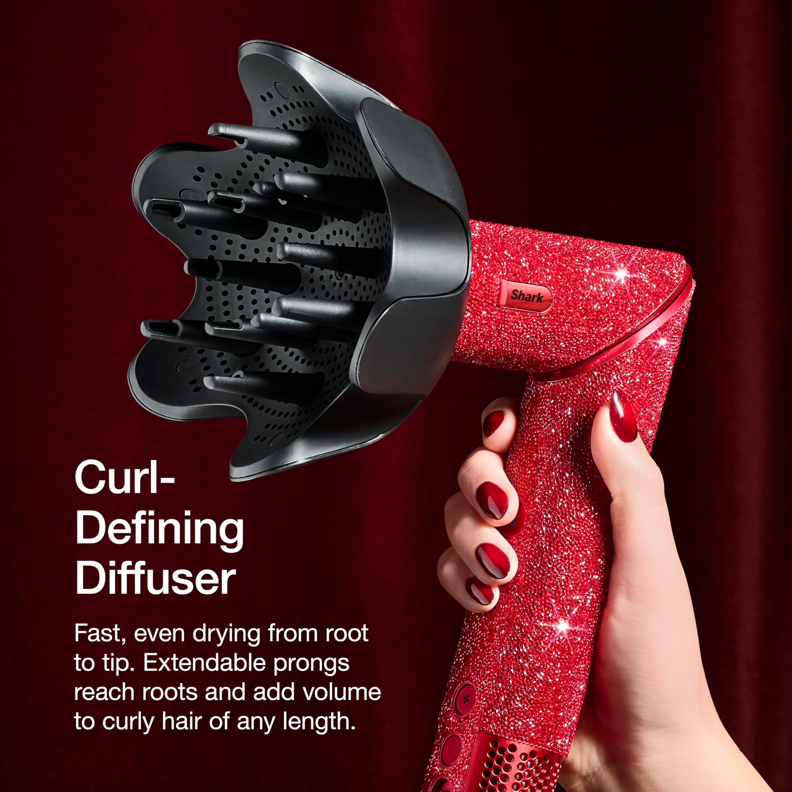 CURL-DEFINING DIFFUSER: Attach to the Shark FlexStyle blow dryer for fast, even drying from root to tip. To enable curl-perfection, our diffuser features retractable and extendable prongs. Only compatible with Shark FlexStyle.