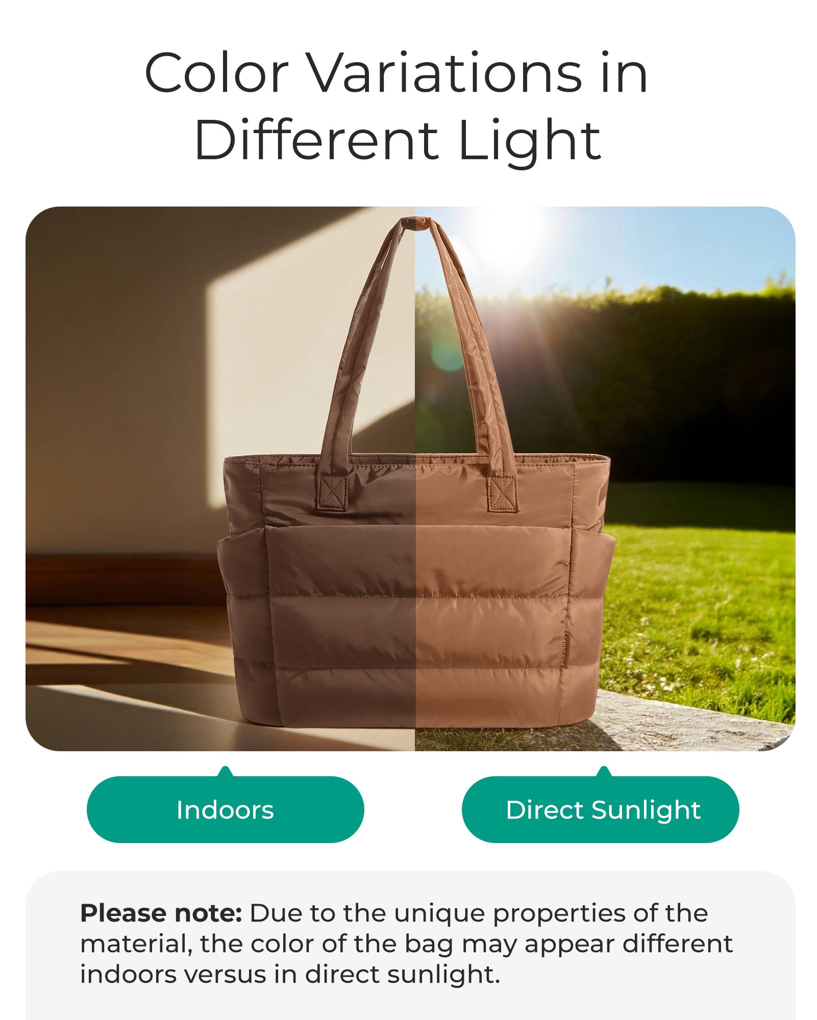 Ultra Lightweight Material : Standard Size and Slim Size weighs only 0.99 pounds. Small Size weighs only 0.79 pounds. Made of durable, soft and light taslan fabric. The puffer tote bag is easy to carry. Good choice of travel bag.