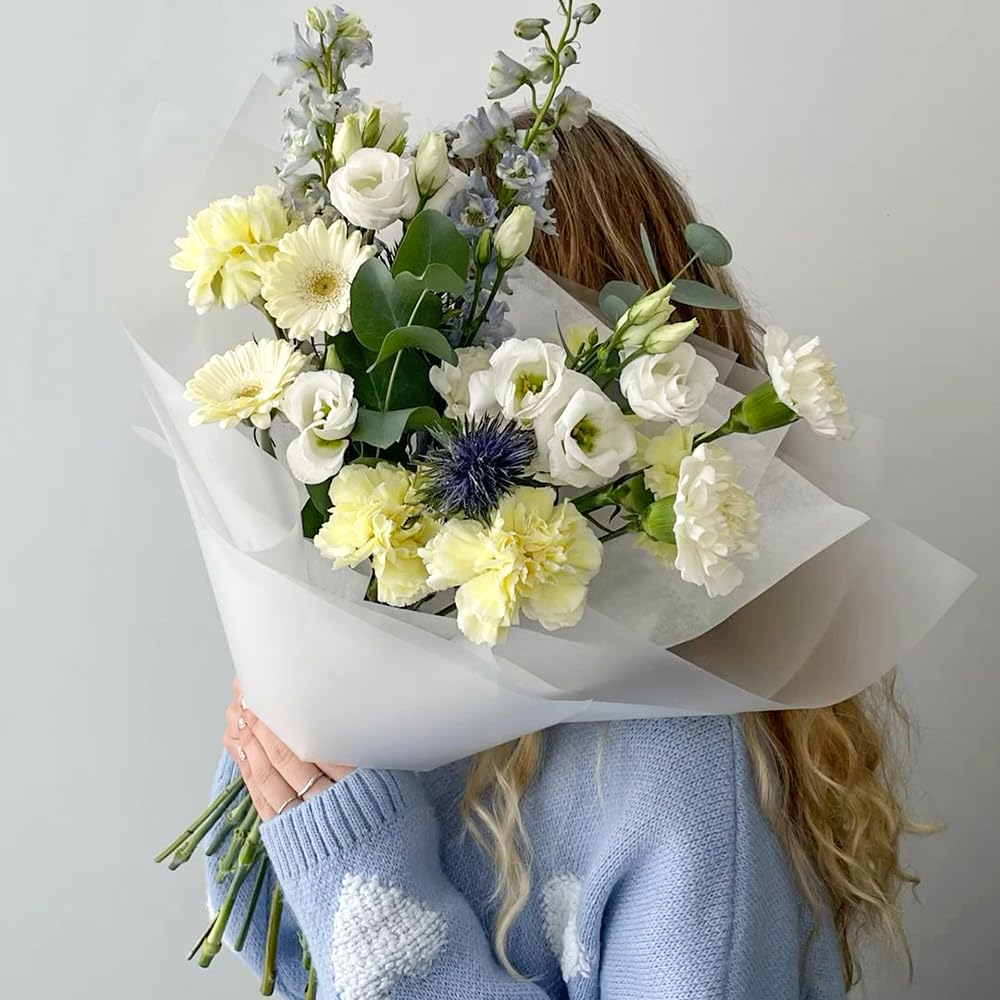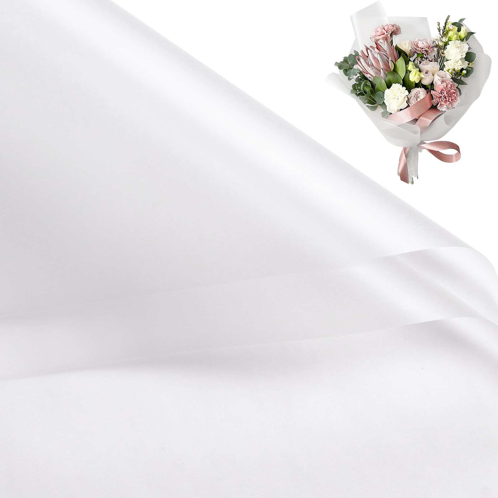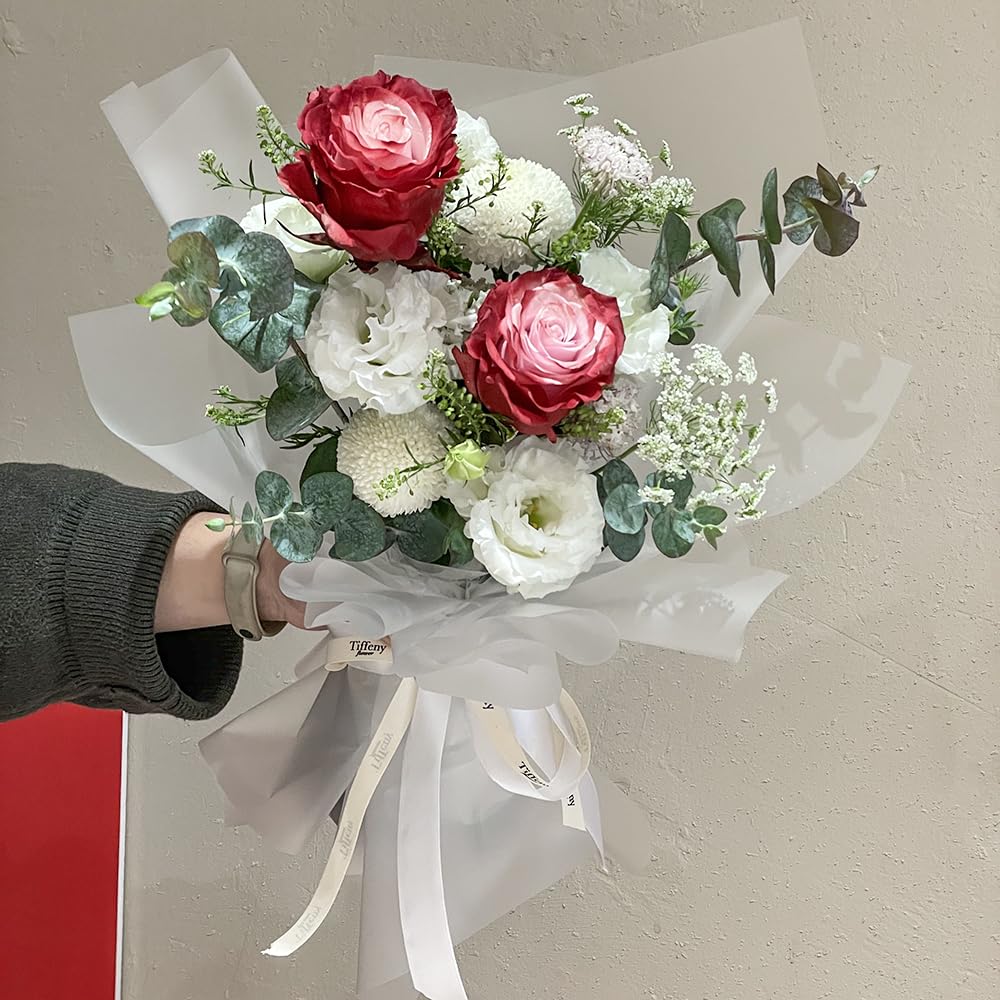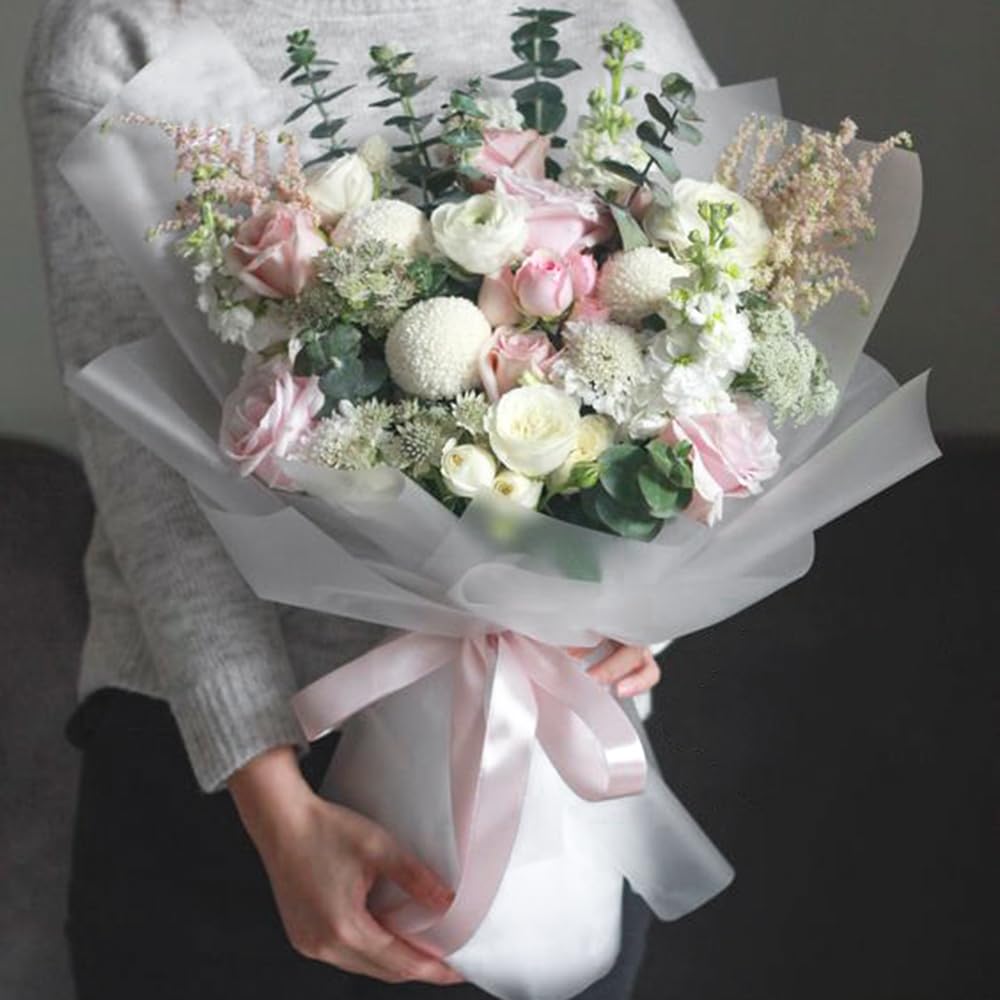 Elegant Design: Classic pure translucent white design, new and charming color make the whole bunch of flowers full of fashion design, smooth and comfortable to touch, makes wrapping paper more noble.