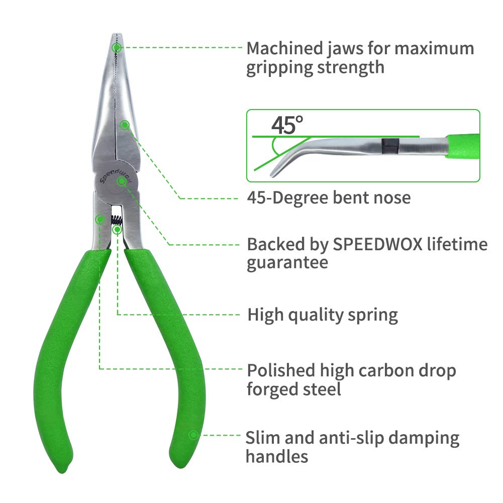 【USAGE】 The 45°jaws are great for grasping small parts and bending wires. Designed for working around obstructions. A must-have tool for jewelers, beaders, students, crafters, mechanical work and other hobby work.