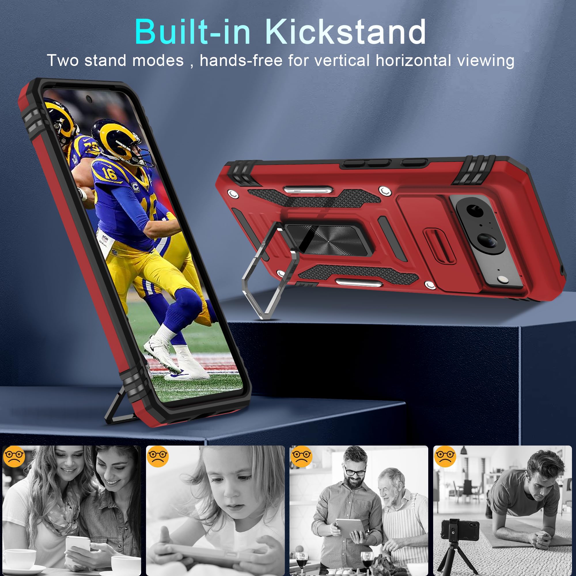 Compatible with: Armor Case with sliding camera cover specially designed for Google Pixel 8 6.2 Inch. NOT fit for other device! The precise cut out fits each button,camera,speakers and ports precisely, easy to press and access