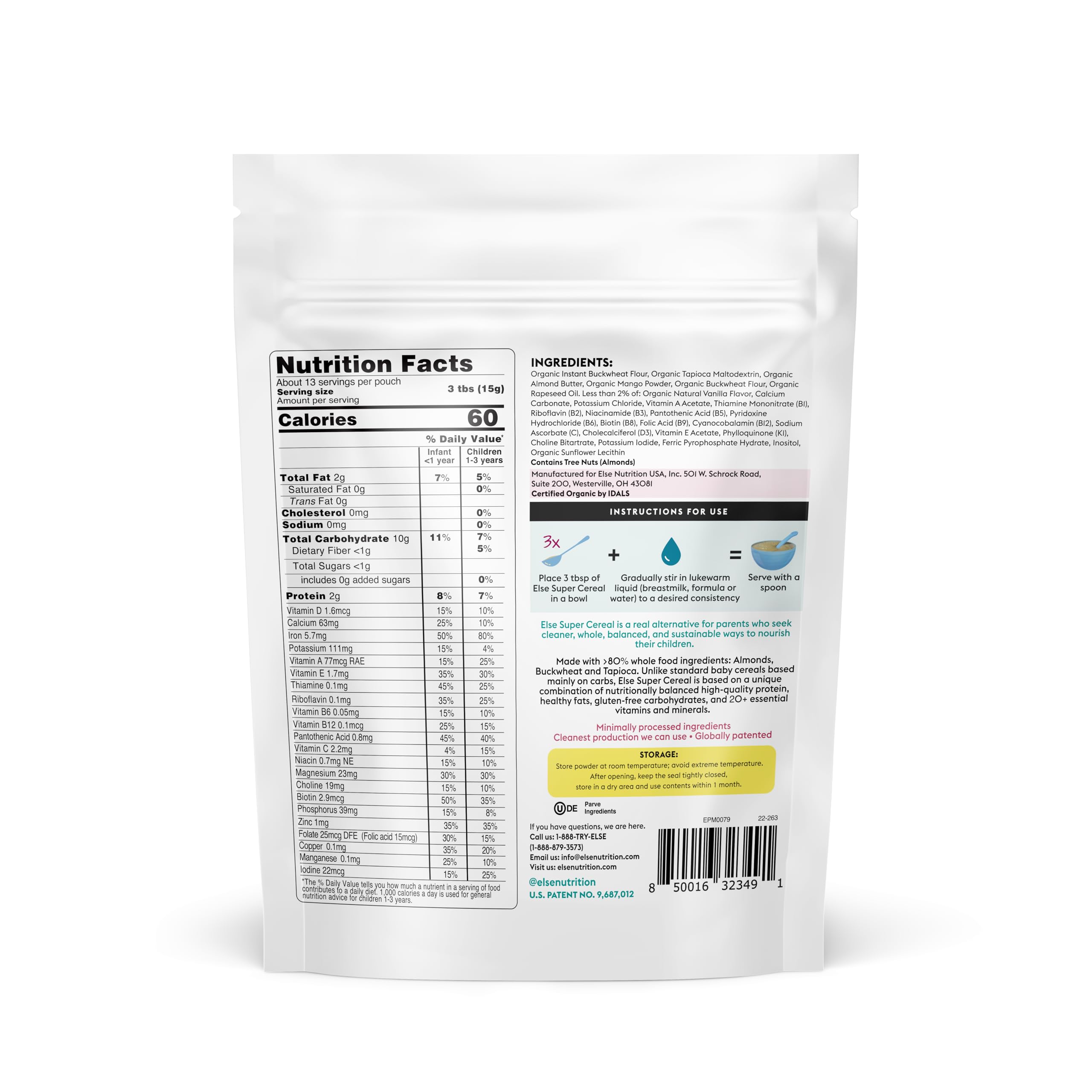 Nutrition Powerhouse: Packed with essential nutrients, Else Super Cereal combines almonds and buckwheat to offer a unique organic blend of gluten-free carbohydrates and high-quality plant protein. This wholesome mix contains all 9 essential amino acids, healthy unsaturated fats, and 25 essential vitamins and minerals, catering to the nutritional needs of growing babies.