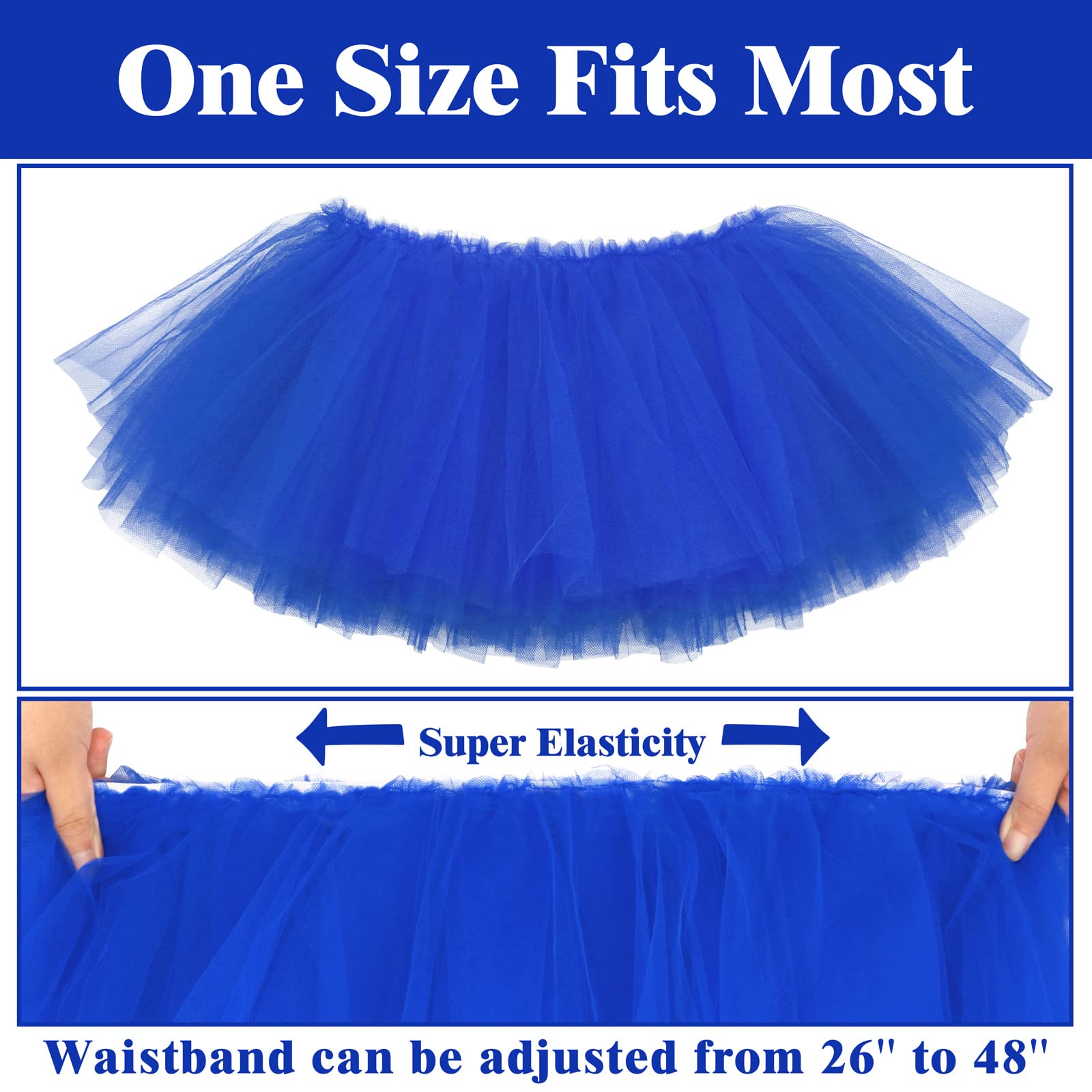 SIZE INFORMATION: One Size fits for most. The adult tutu skirts for women measure about 10 inches in length. And our tutus are designed with comfortable and stretchy waistband, which can be adjusted approximately from 26" to 48" in width. The waist circumference of the tutu is 26'' when not stretched; and due to excellent elasticity of the waistband, the maximum waist circumference can reach 48'' when stretched. The tutu for women is not only durable, but also very easy to slip-on or off.