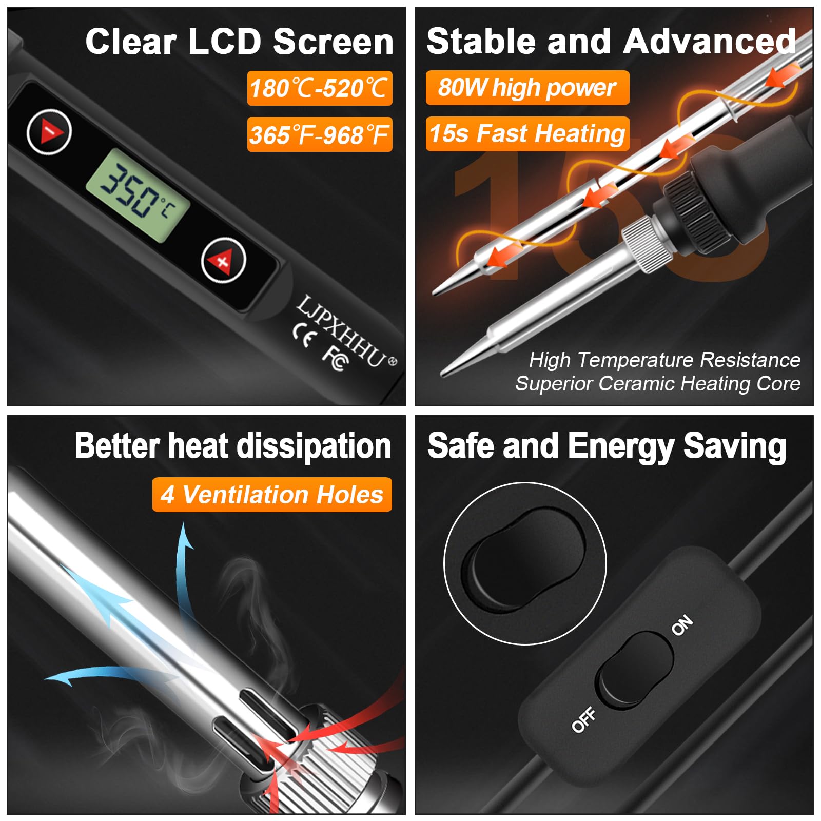 15s Fast Heating-Up: Upgraded 80W high power & superior ceramic heating core can make our professional soldering iron heats up quickly to the required working temperature in 15 seconds, making it ideal for delicate electronics and heat-sensitive components.