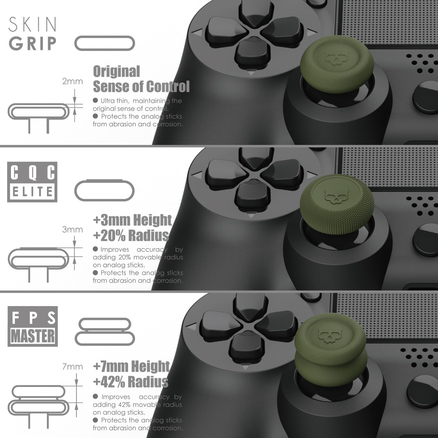 IMPORTANT NOTE: In order to have the best performance, please use dry cloth or tissue to wipe the Thumb Grip before you use. If the thumb grips become slippery, please clean them with detergent or medical alcohol. Compatible with: NS Pro Controller [NOT FOR Switch JOY-CON] PS4 DUALSHOCK CONTROLLER. PS5 DualSense wireless Controller. Package Include: 2 x SKIN GRIP 2 x CQC ELITE 2 x FPS MASTER SKIN GRIP Feature: Protect the original joy-con stick cap and keep the original control feelings and user habit. CQC Elite Feature: - Concave Design. - Increasing accuracy to meet the requests of control accuracy from gamers. However, please note that it may cause difficulty to press "- Button" and "B Button" for the reason of personal habits and finger size. FPS Master Feature: To fulfill the gamers' requests of shooting games and some hardcore games. Gamers often focus on joystick control instead of using "- button" and "B button" in these games. CQC+FPS=FPS Pro If the FPS grip does not satisfy you, try adding CQC on your FPS thumb grip. You also can add FPS grip on a FPS grip if you want. About Us: If you have any inquiries or suggestion, please feel free to contact us by email. Happy Gaming!