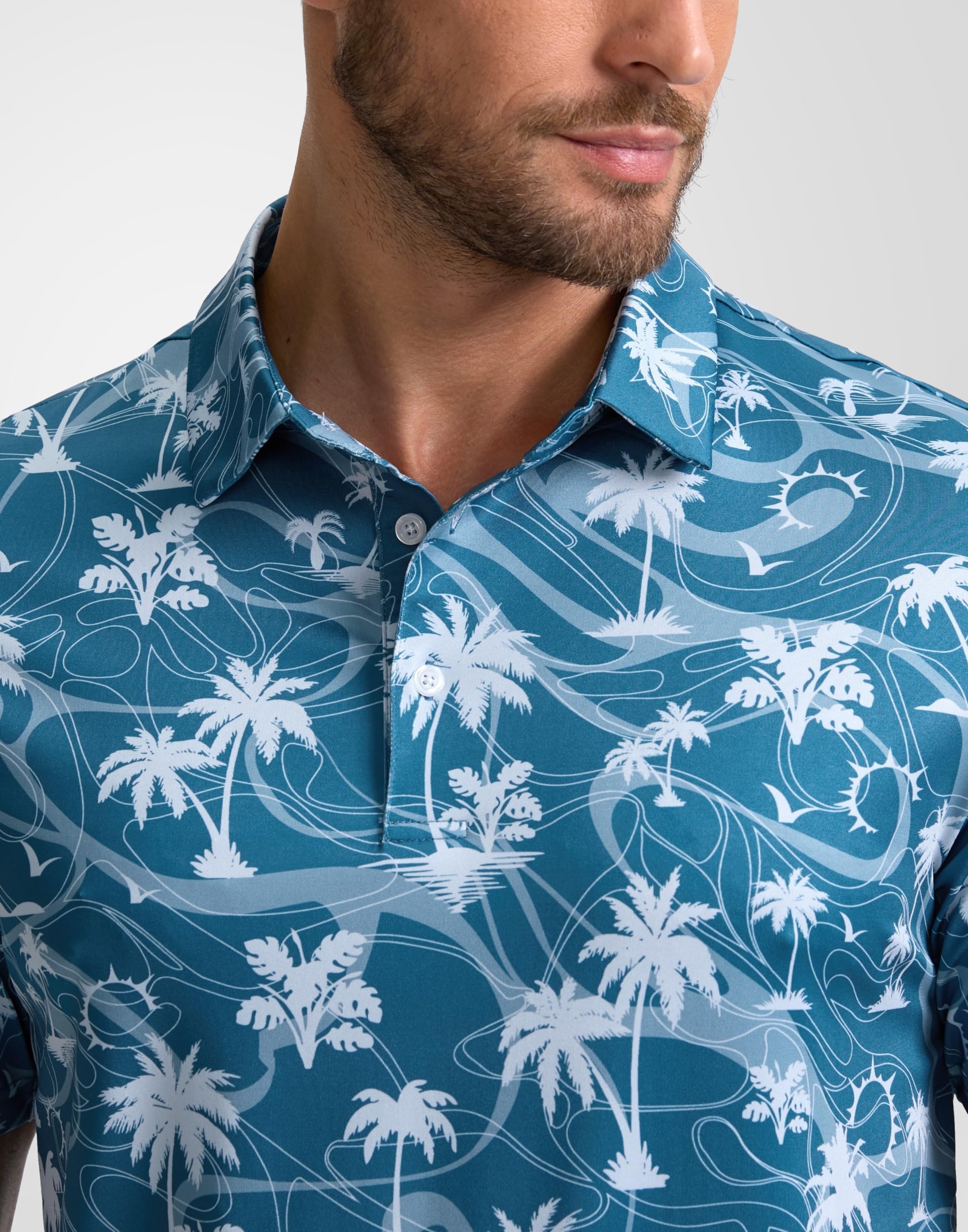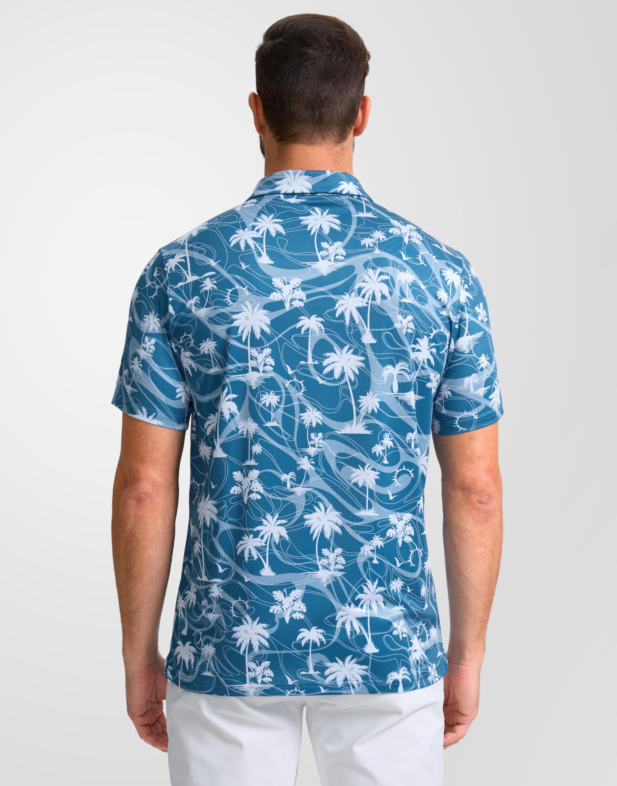 Performance Polo: This breathable, lightweight men's polo is crafted from moisture-wicking, quick-drying fabric to keep you cool and dry, preventing any sticky or clammy discomfort on hot days. With UPF 50+ protection, it shields you from harmful UV rays. Ideal for the golf course or any outdoor activity.