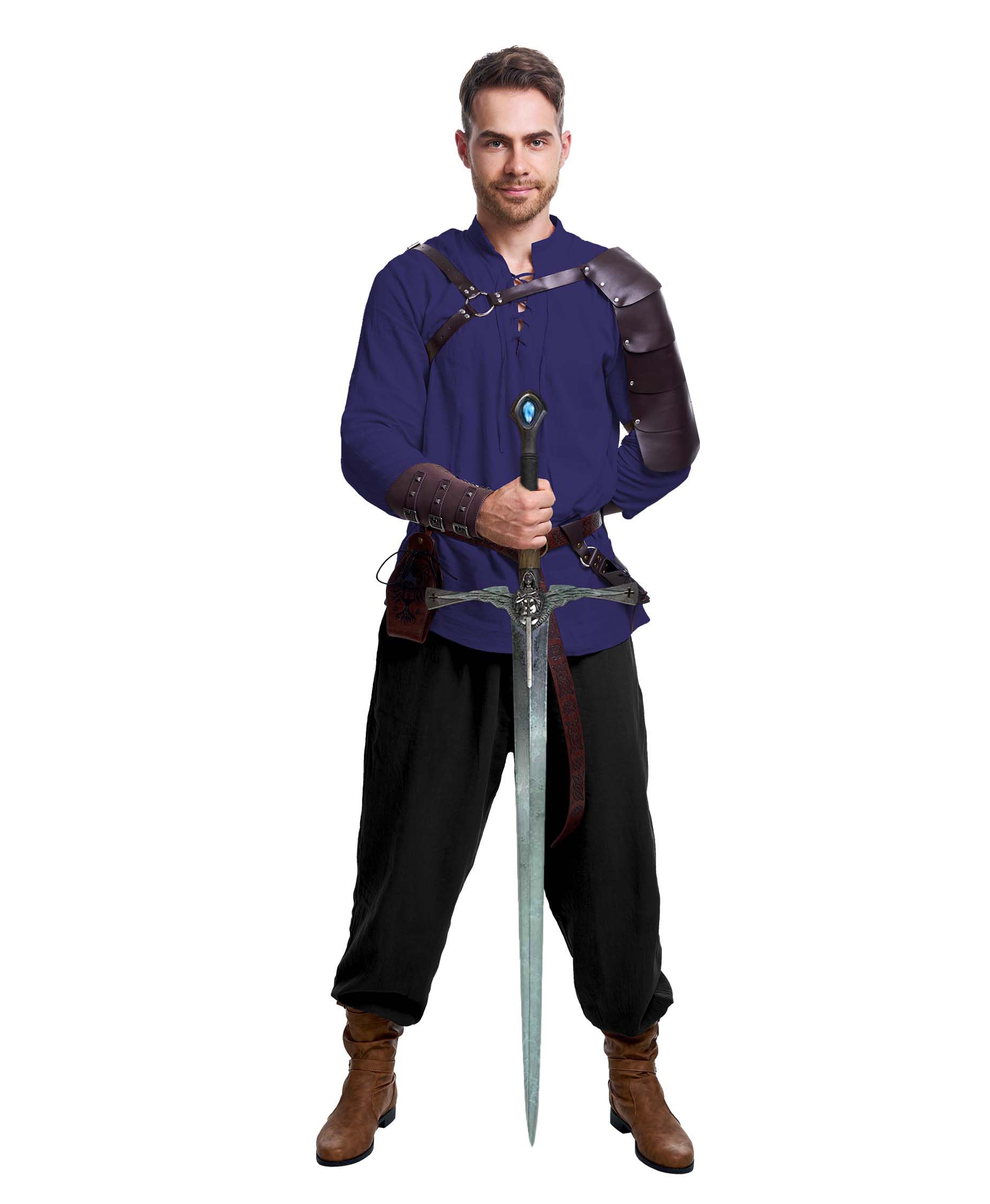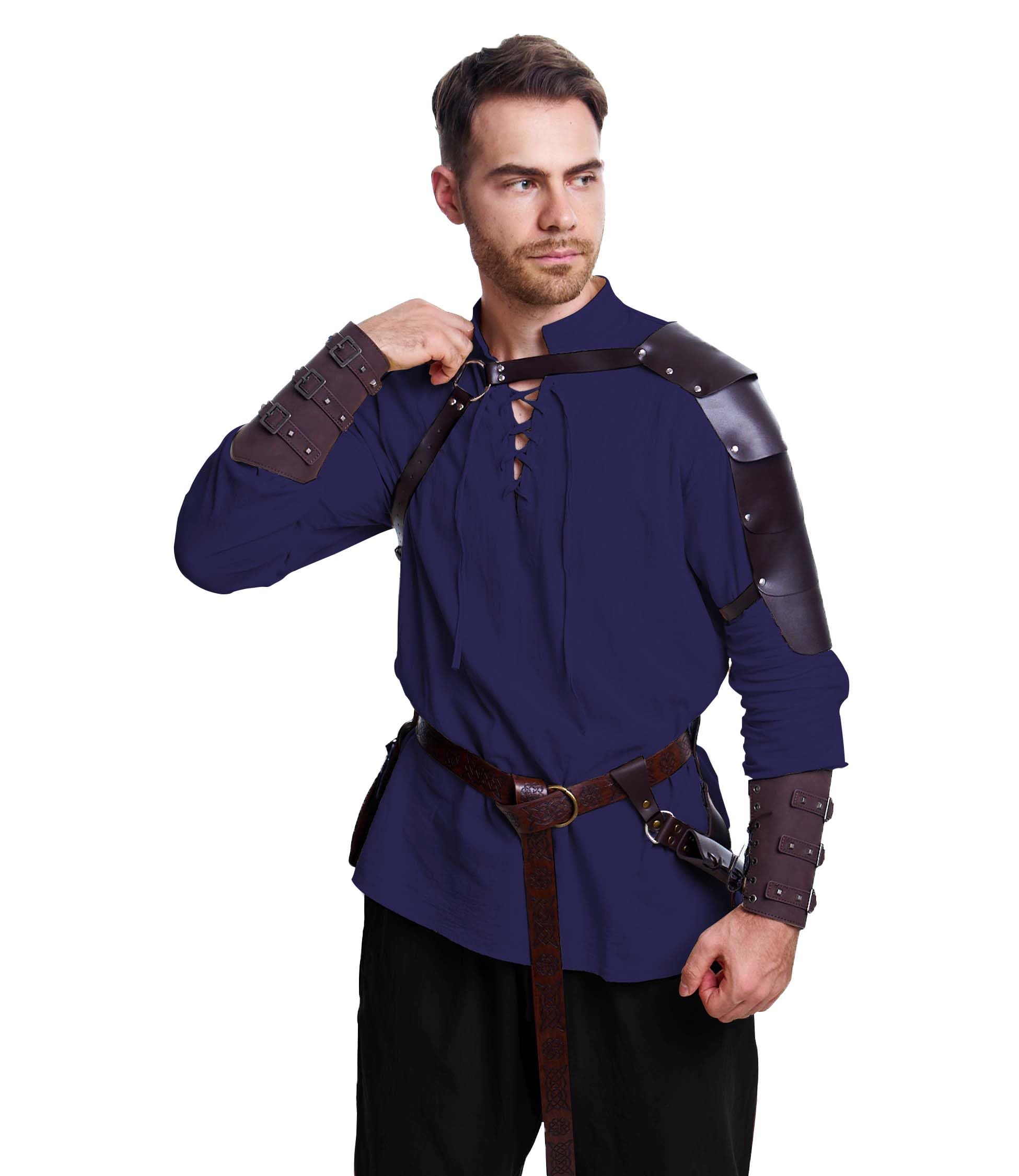 Packing list: Renaissance costume includes: Shirt*1, Pant*1, Viking Belt*1, Bracer *2, Scabbard*1, Waist bag*1, Shoulder Armor*1