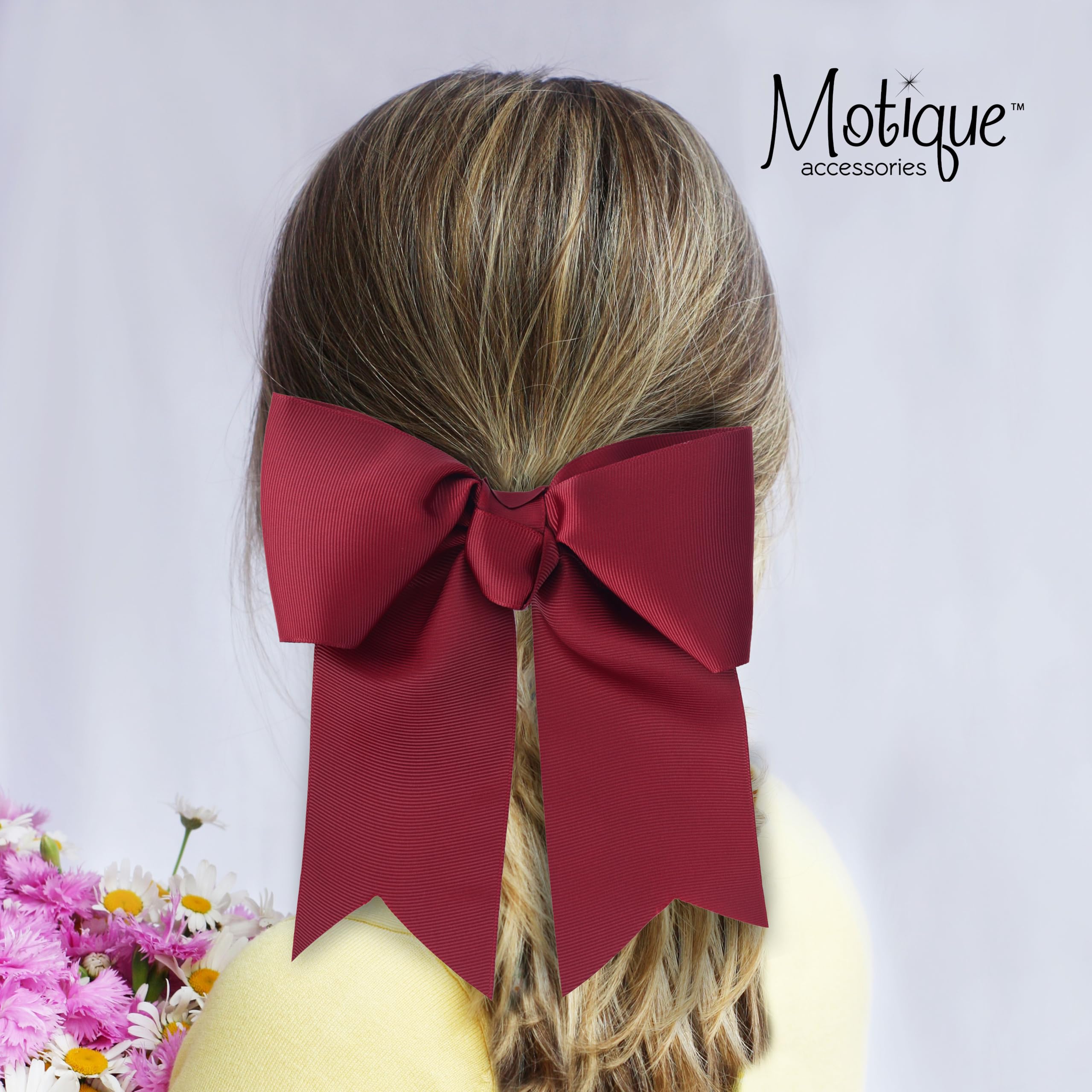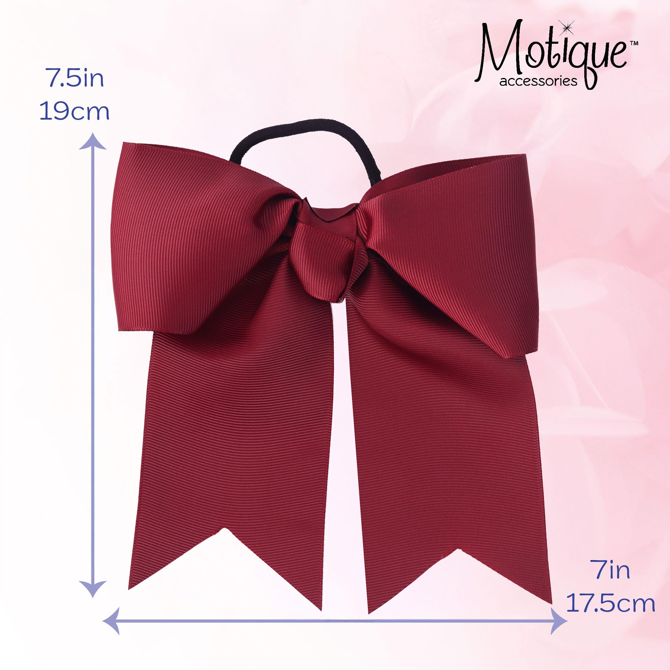 This is a very pretty girls jumbo bow pony with tails. It measures 7 inches wide and 7.5 inches tall from the highest point of the bow until the bottom of the tails. There is a strong elastic hair tie attached to the back. This grosgrain bow will look adorable in your girl's hair! Makes a great stocking stuffer or gift item!