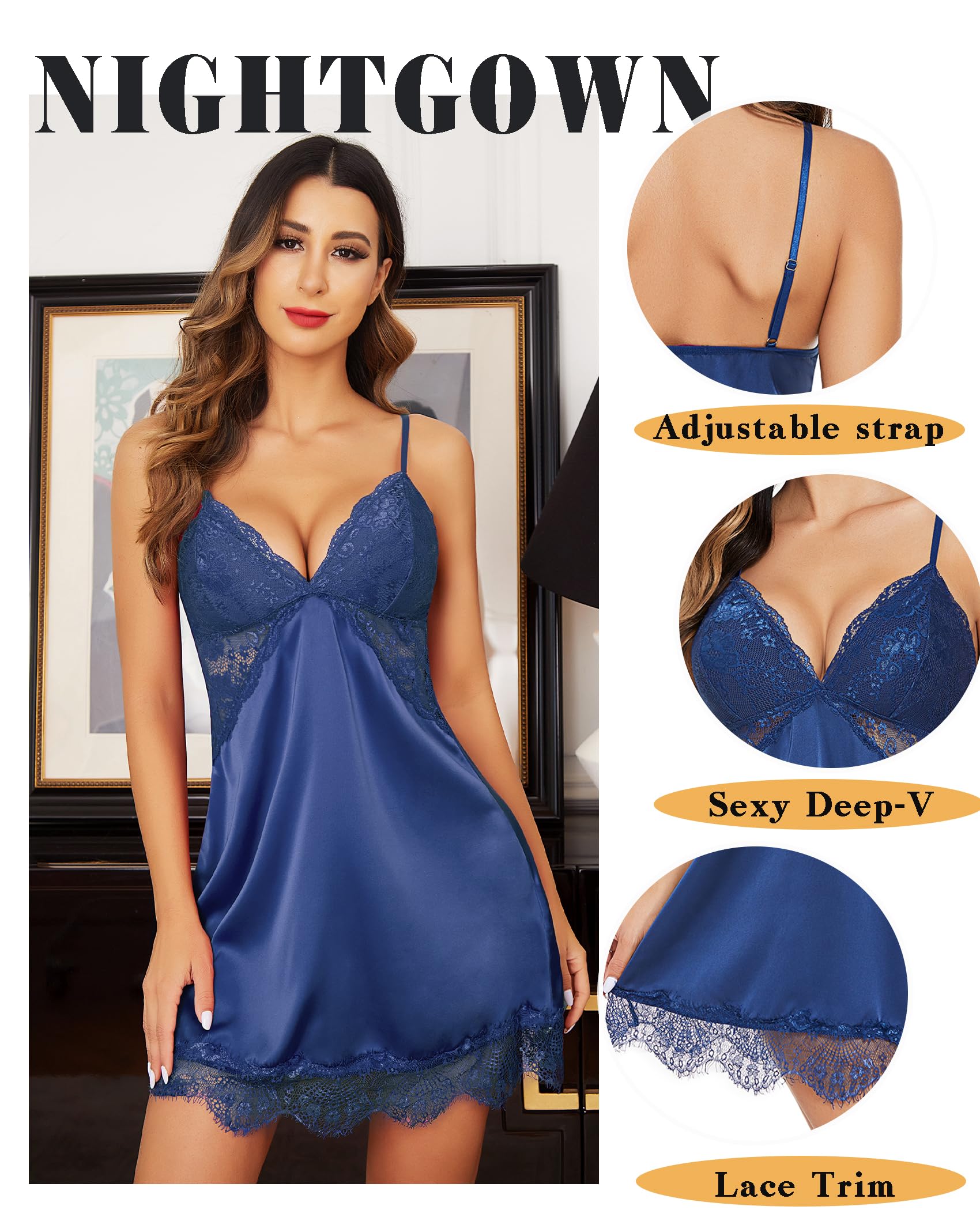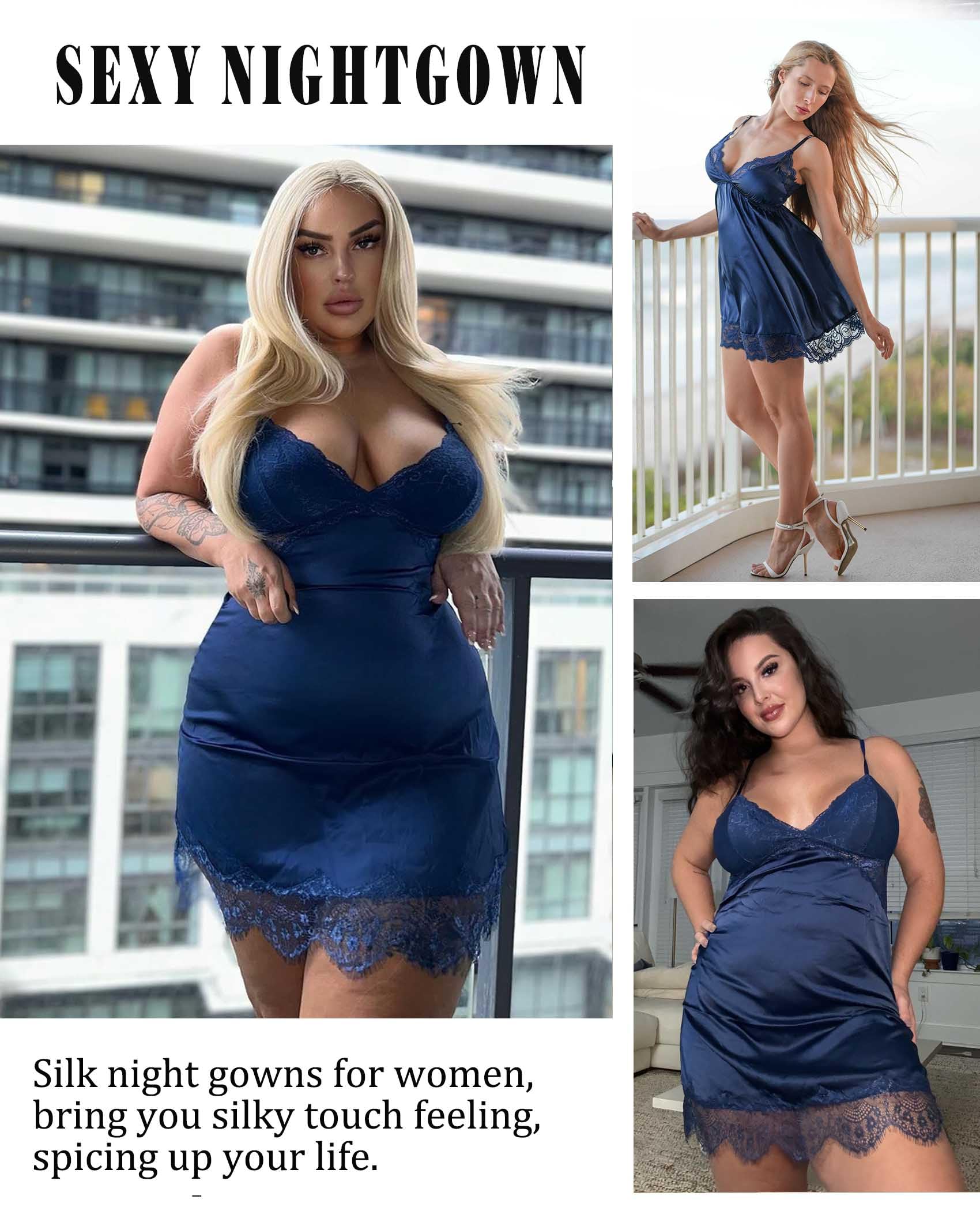 【Silk Nightgowns】: Lightweight, soft, and breathable quality fabric, delicate lace and smooth silky material suit for daily nightwear.