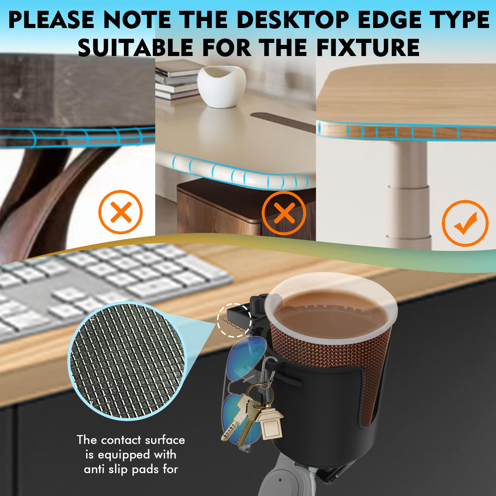 Multifunctional design: Our drink holder is designed for convenience. It has a U-shaped groove extending from the edge to accommodate glasses, office pens, etc. There is also a silicone anti-slip flap inside the cup holder to protect your water cup to the greatest extent. .