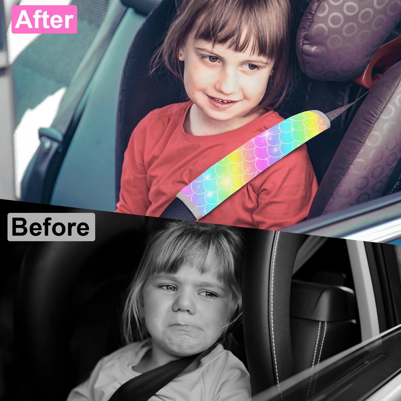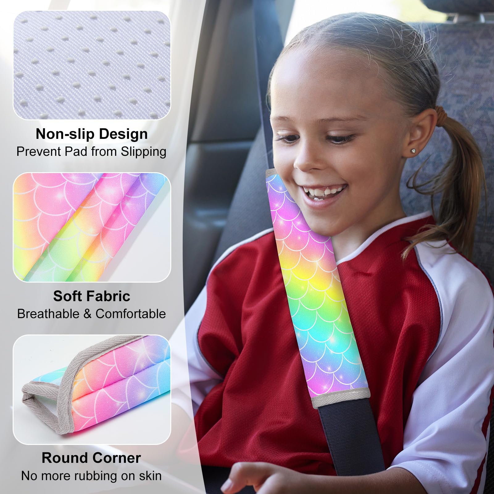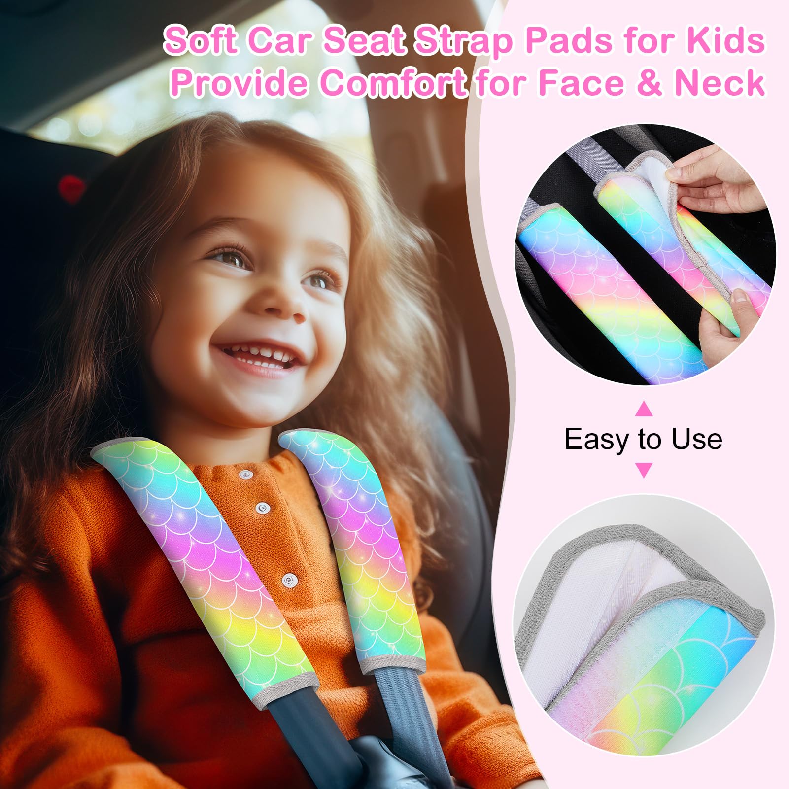 Soft & Comfortable Material: Our seat belt cover cushion for baby is made of soft and breathable fabric, it can protect baby's skin from being scratched by the seat belt; This seat belt cover with cute pattern and bright colors will make your kids happy