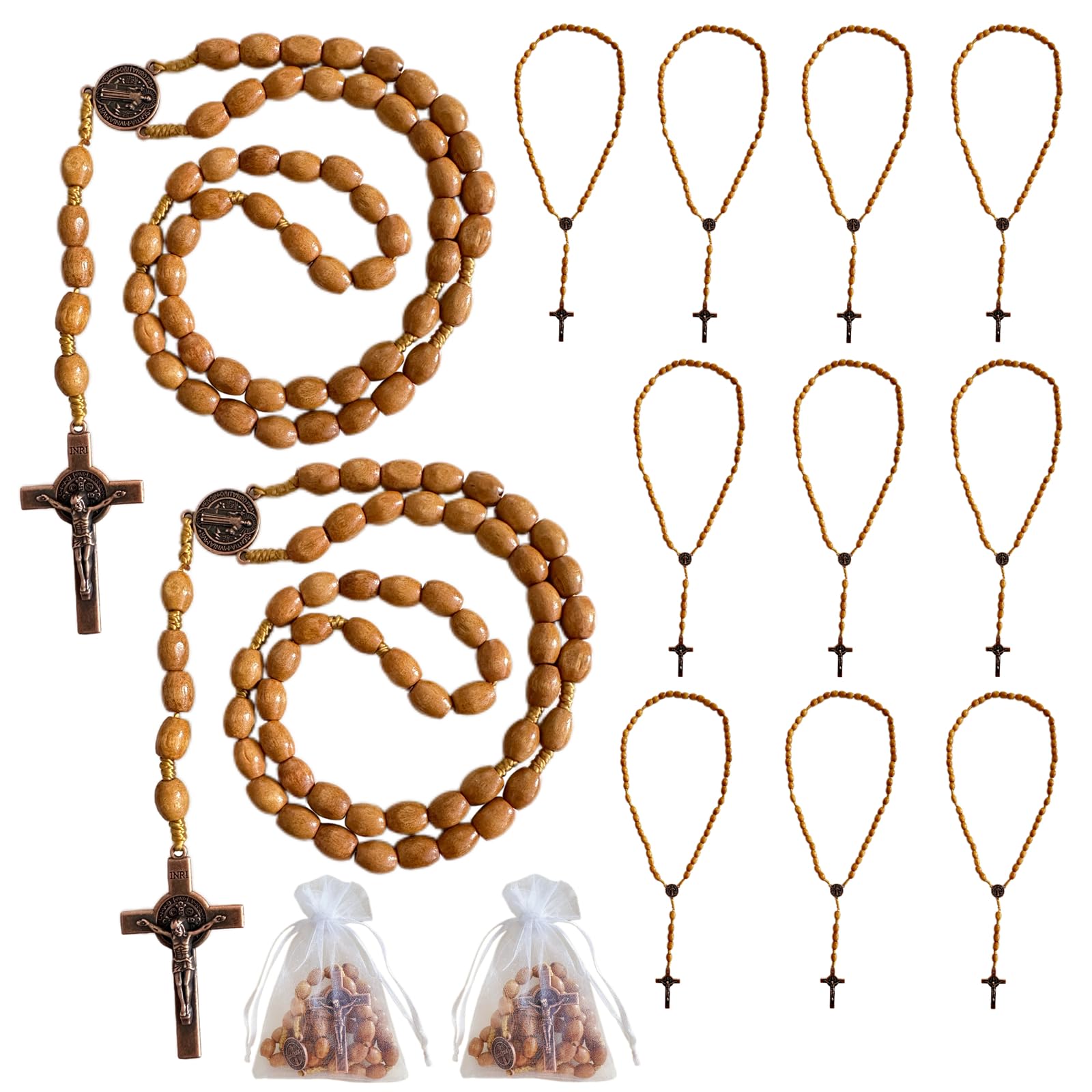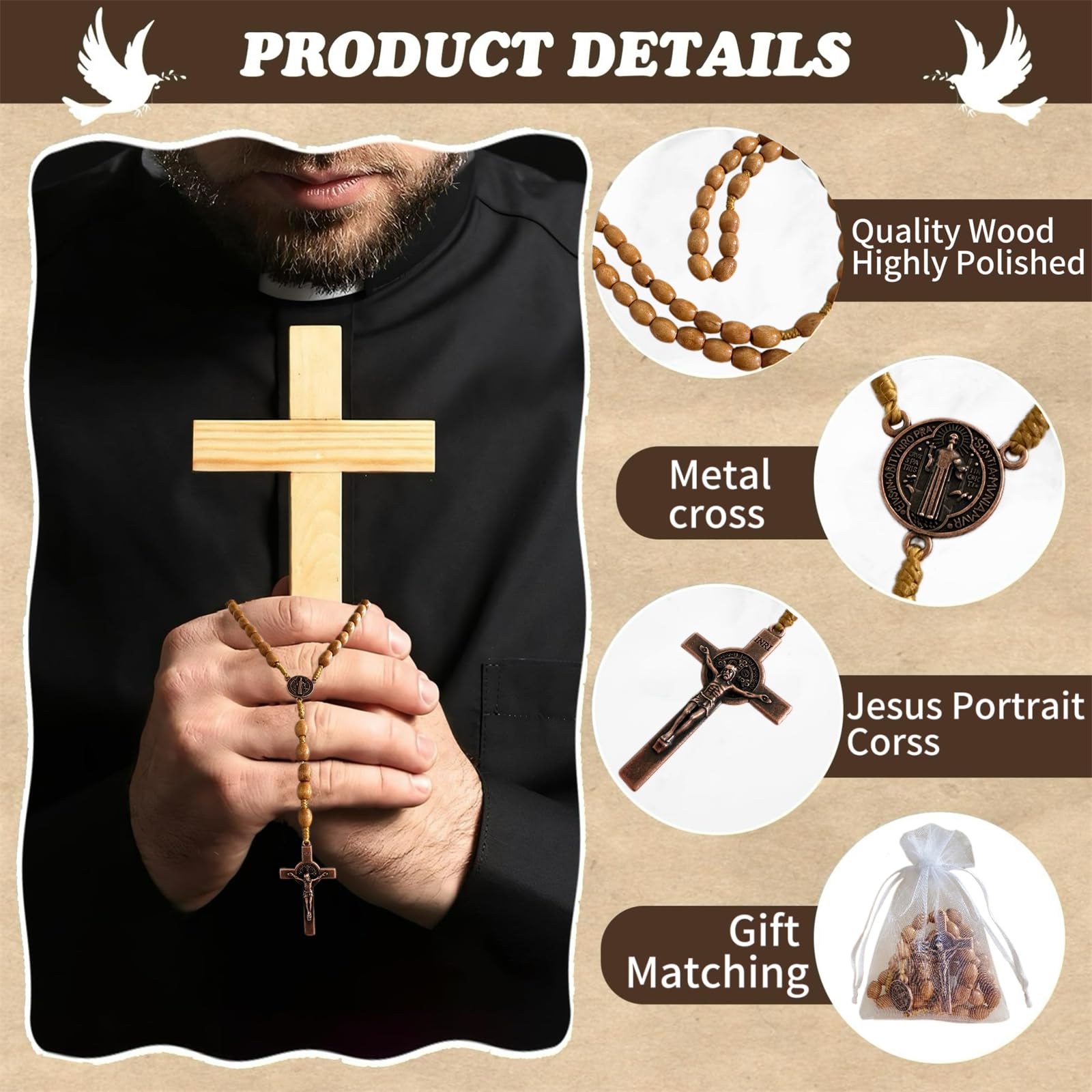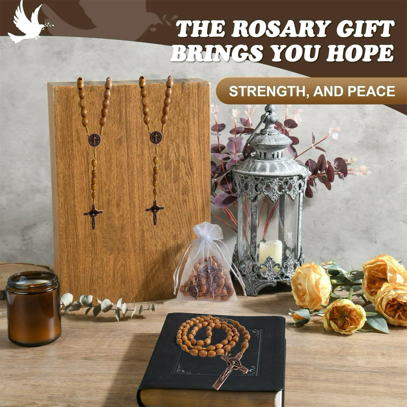 Traditional Design: Crafted with brown wood beads, a Saint Benedict medal, and a crucifix, this rosary honors Catholic traditions.