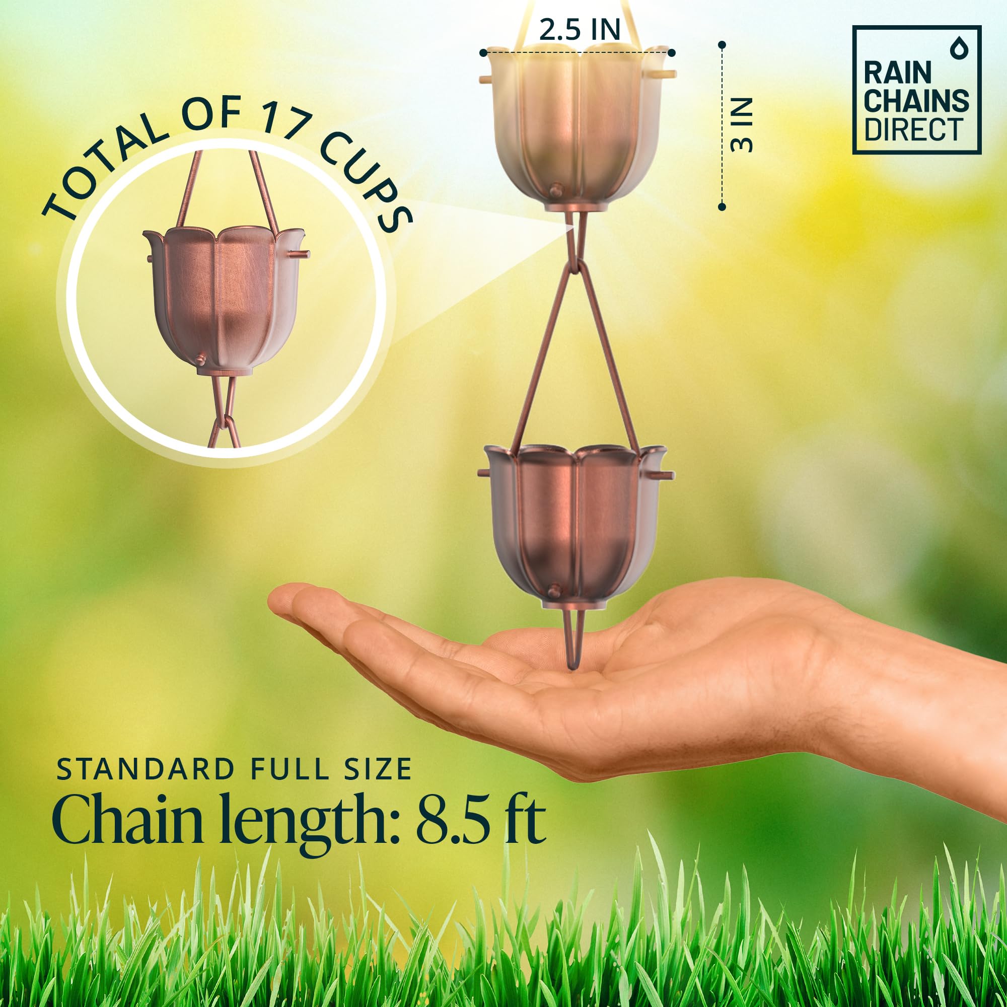 Exceptional Durability - Crafted from pure copper, our rain chains for gutters are meticulously hand-assembled, promising a lifetime of classic beauty and resilience.