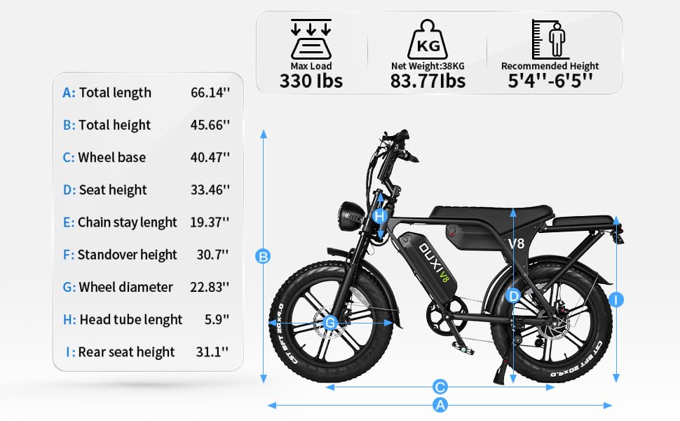PEAK 1000 POWERFUL MOTOR: OUXI V8 Max electric bike is equipped with 1000W high speed brushless motor, the upgraded model provides stronger electric power with speed reaching up to 32KM/H. Providing strong power and climbing capabilities for the electric bicycle