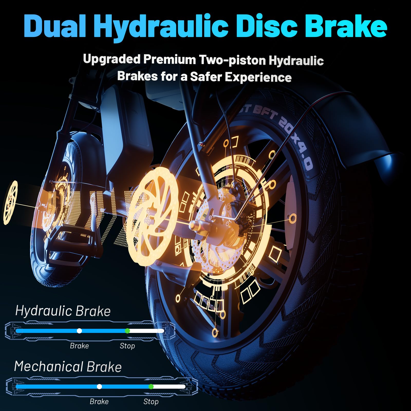 SAFETY FIRST: The electric bike has passed the strict certification of UL2849. Dual hydraulic disc brake ensure all-weather braking ability, one-second braking, rapid braking, front and rear lights improve visibility during daytime and nighttime riding