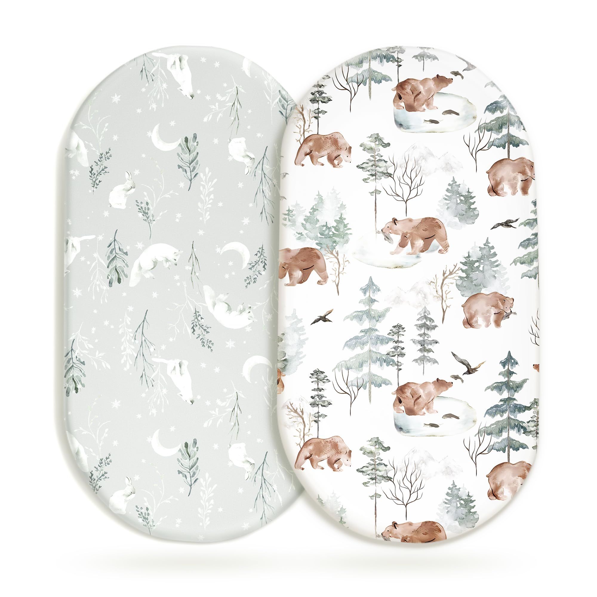 Universal Fit – Measuring 32" x 16" x 5". Our bassinet sheets fit almost all standard oval, round, rectangle, hourglass shaped bassinet mattress. Each bassinet mattress pad cover comes with an elastic band encased at the bottom for safety.