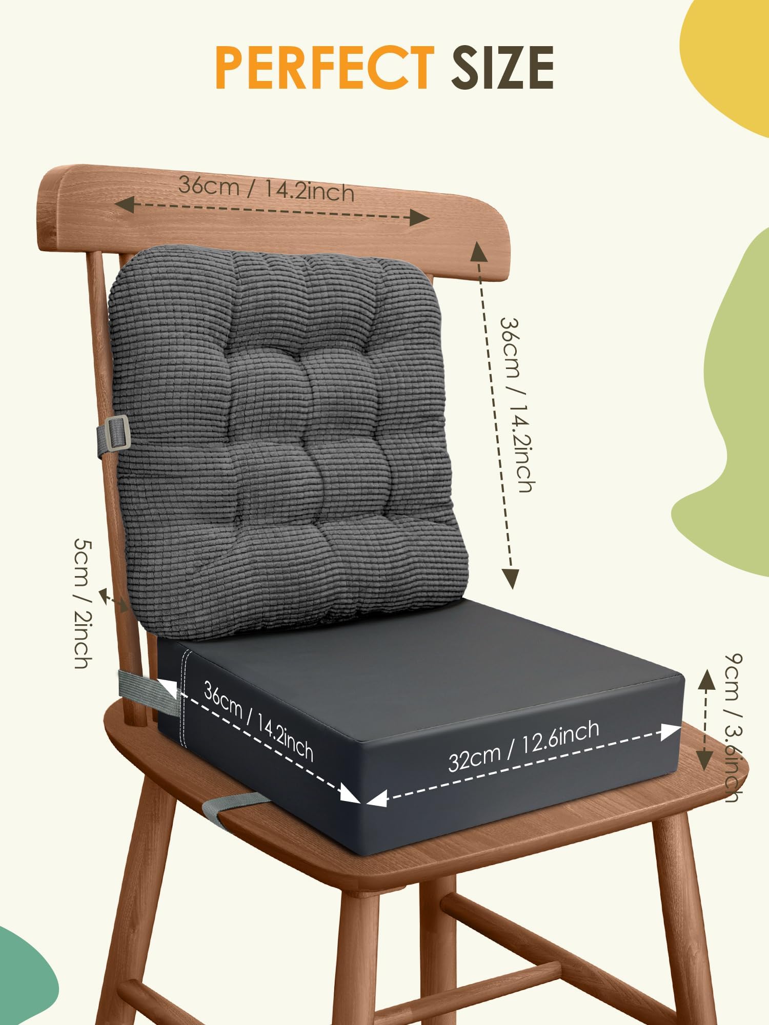 【UPGRADED BOOSTER SEAT CUSHION with A CORDUROY BACKREST SET】The 2-inch thickness backrest provides additional comfortable support for baby's back, making them more enjoyable.The backrest made of high quality soft corduroy fabric, easily help baby learn a good rest sitting posture.