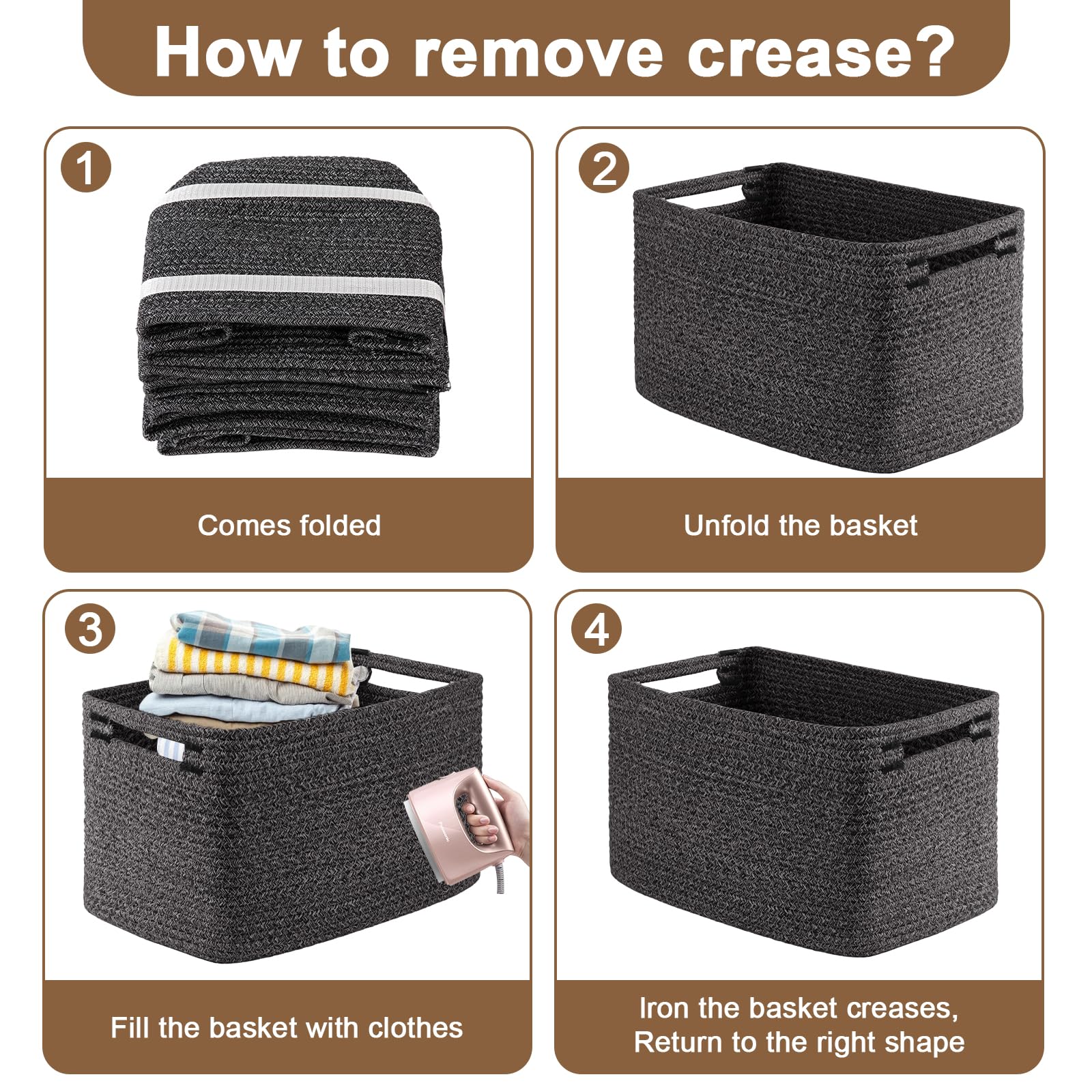 NOTE: The woven baskets is folded for shipping, It will turn back to its elegant shape quickly by filling it with towels or blankets, and ironing is a great idea to regain the creases. Also, you can fold it into a flat shape for easy storage when not in use