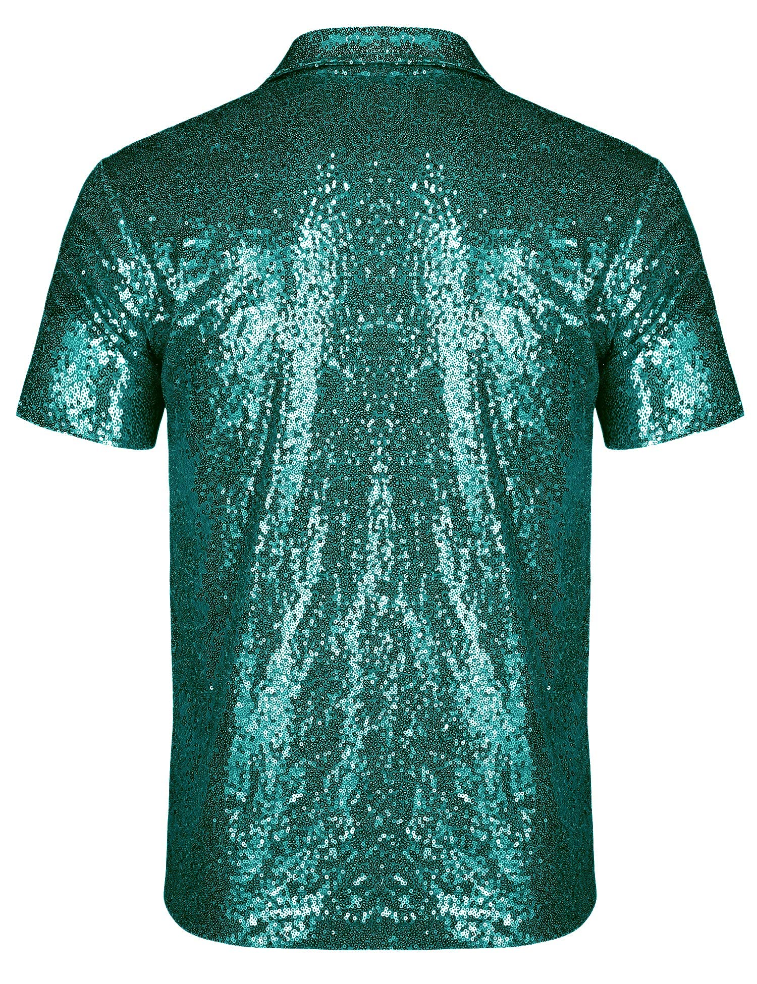 Unique Design: Our sequin disco polo shirt features a double-layered design that includes a sequin-covered outer layer and a full mesh-lined inner layer. The mesh layer provides added comfort and protects the skin from scratching, while the full sequin layer decoration adds a sparkling and shimmering effect