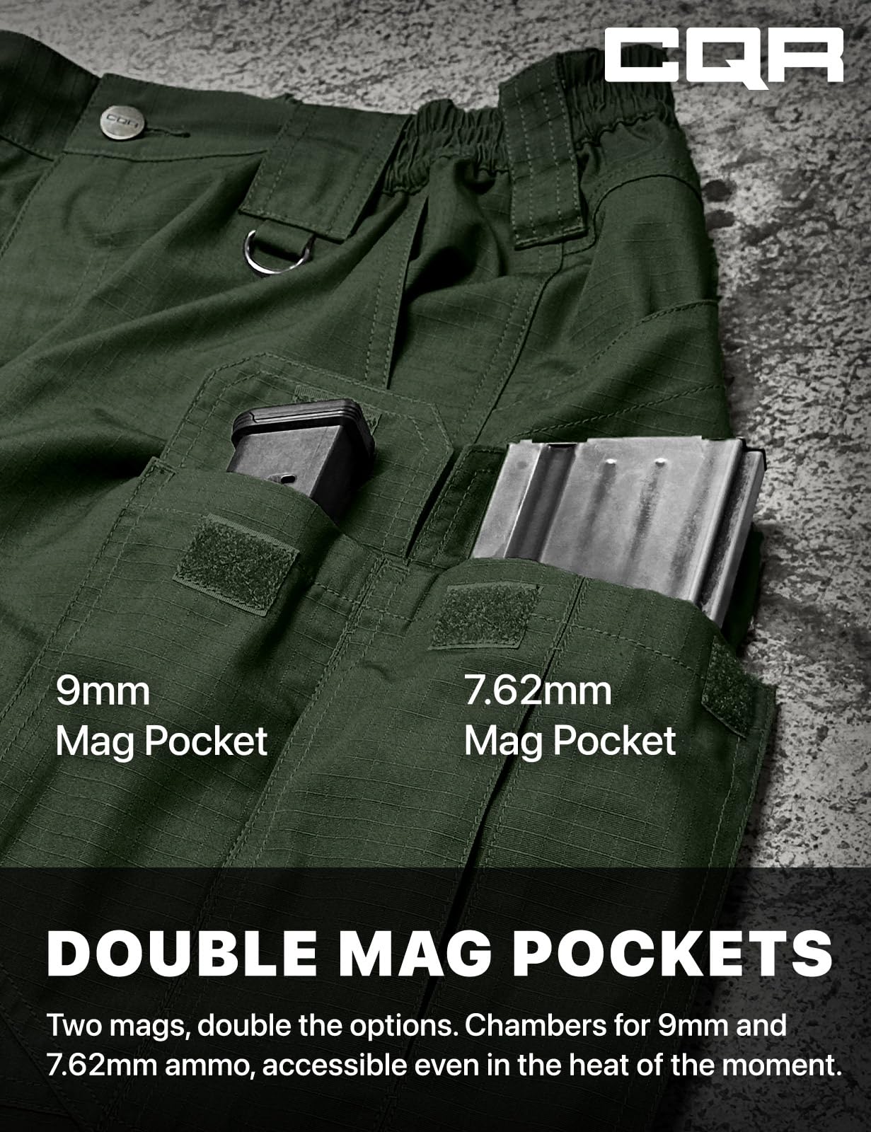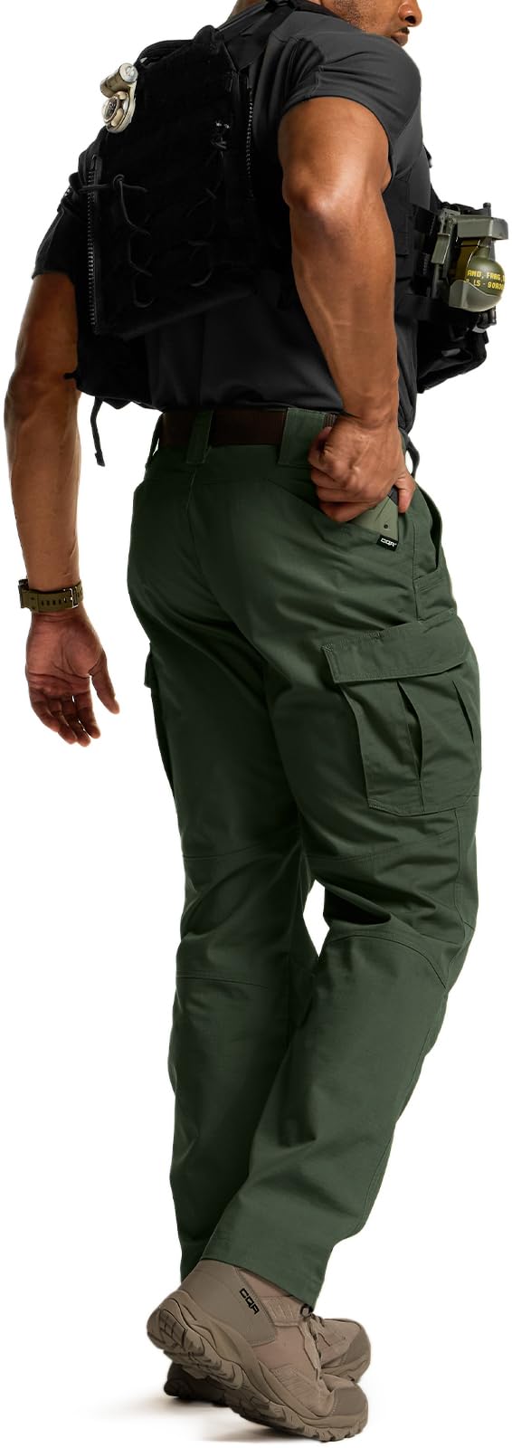 Description CQR Men's Tactical Pants Series Suitable for tactical, combat, military training, fishing, climbing, hiking, motorcycling, and outdoor activities *** Exclusive Tactical Belt is NOT included *** Materials Mix of Polyester & Cotton (Ripstop Fabric) is breathable, wrinkle-free, comfortable Duratex Ripstop Fabric Ripstop fabric has excellent durability and has water-resistant and stain-resistant Elastic Waistband Side waistband is to make a secure fit and support the active movement Tactical Layout Multi-purpose cargo pockets allow carrying various tools and equipment without having to hold them in your hands Button and Zipper Closure High-strength and high-density the Metal Alloy Button and Zipper along with a durable mounted stopper