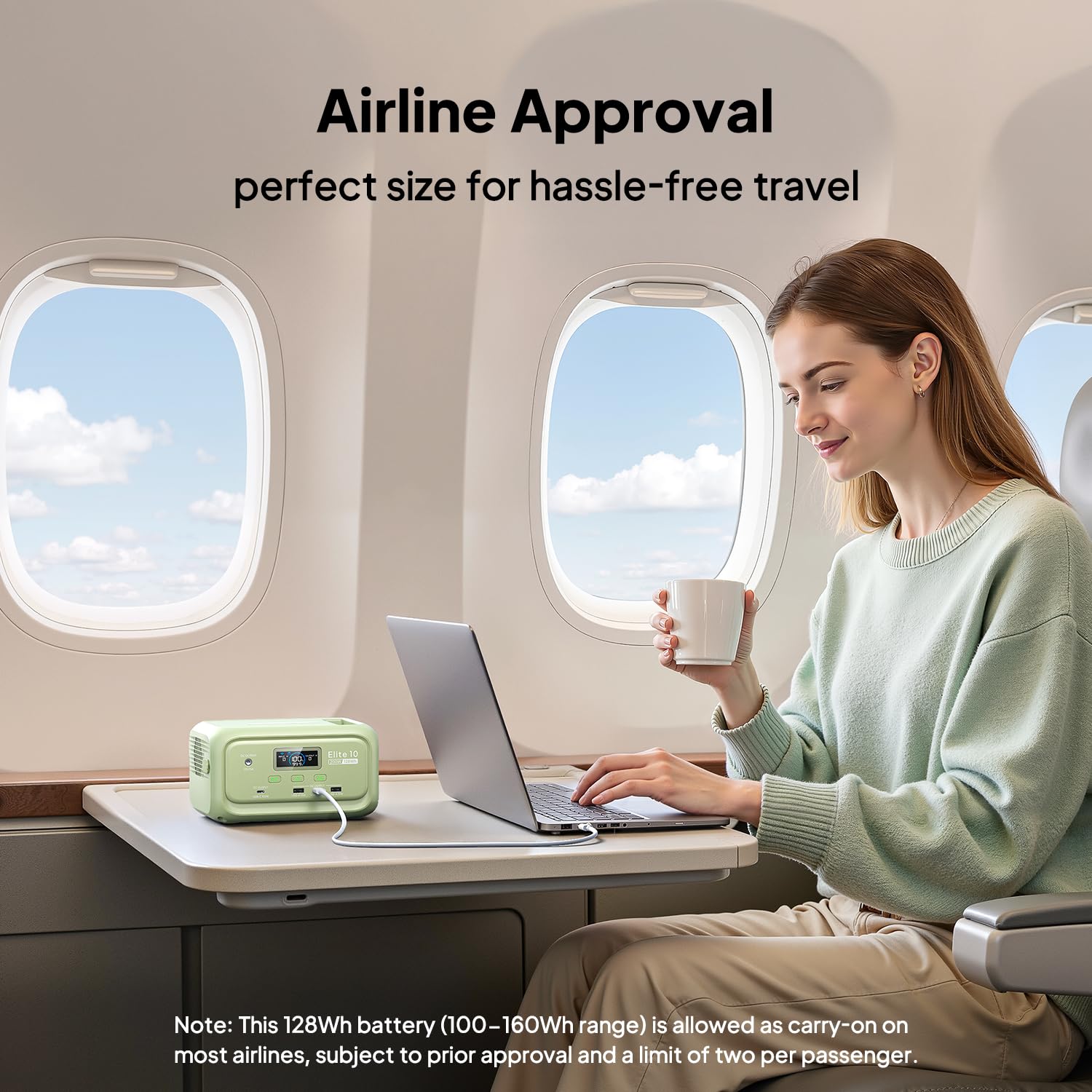 [Beyond a Power Bank] - More than a power bank, Elite 10 is a 128Wh portable power station with a 200W AC outlet, 100W USB-C fast charging, and multiple DC ports. Equivalent to 4 regular power banks, it easily powers laptops, drones, cameras, and other small devices during camping, travel, or unexpected outages—your compact generator for everyday backup.