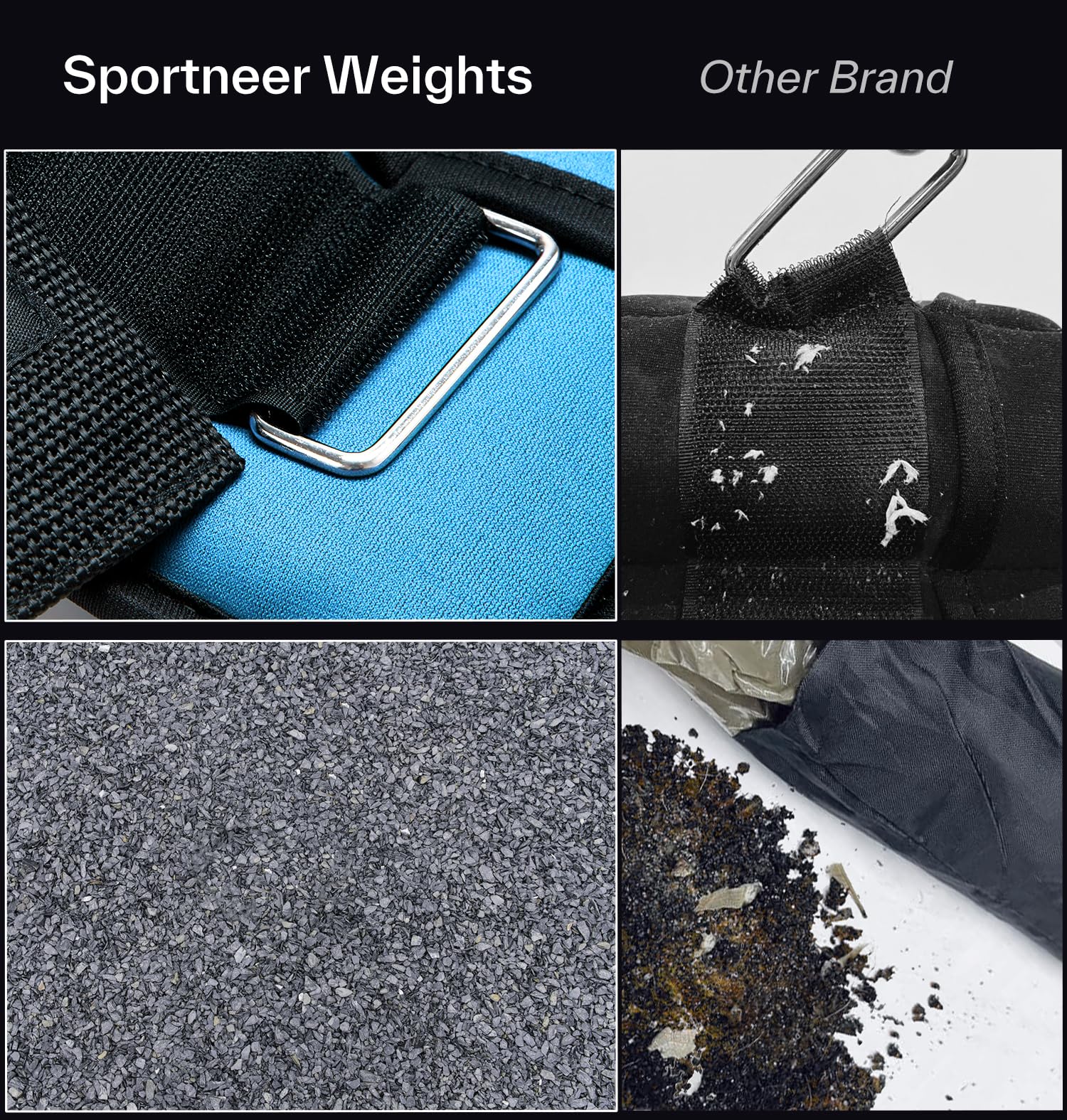 QUALITY & COMFORT: The Sportneer ankle weights were made of neoprene exterior, reinforced stitching, sturdy outer trim and moisture absorbing material inside, soft, breathable and comfortable, you could feel its softness when hold in your hands