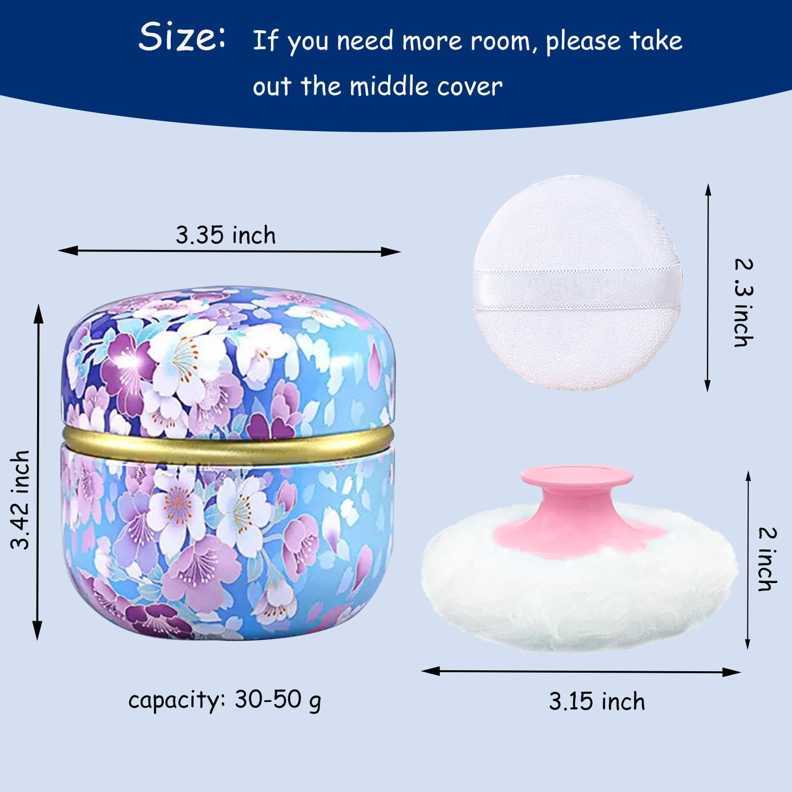 GORGEOUS POWDER BOX: our powder case is made of tinplate, not easy to break and fade after being dropped, also can be used for a long time. the surface of the powder container has exquisite patterns designed by our artist, bring visual enjoyment.