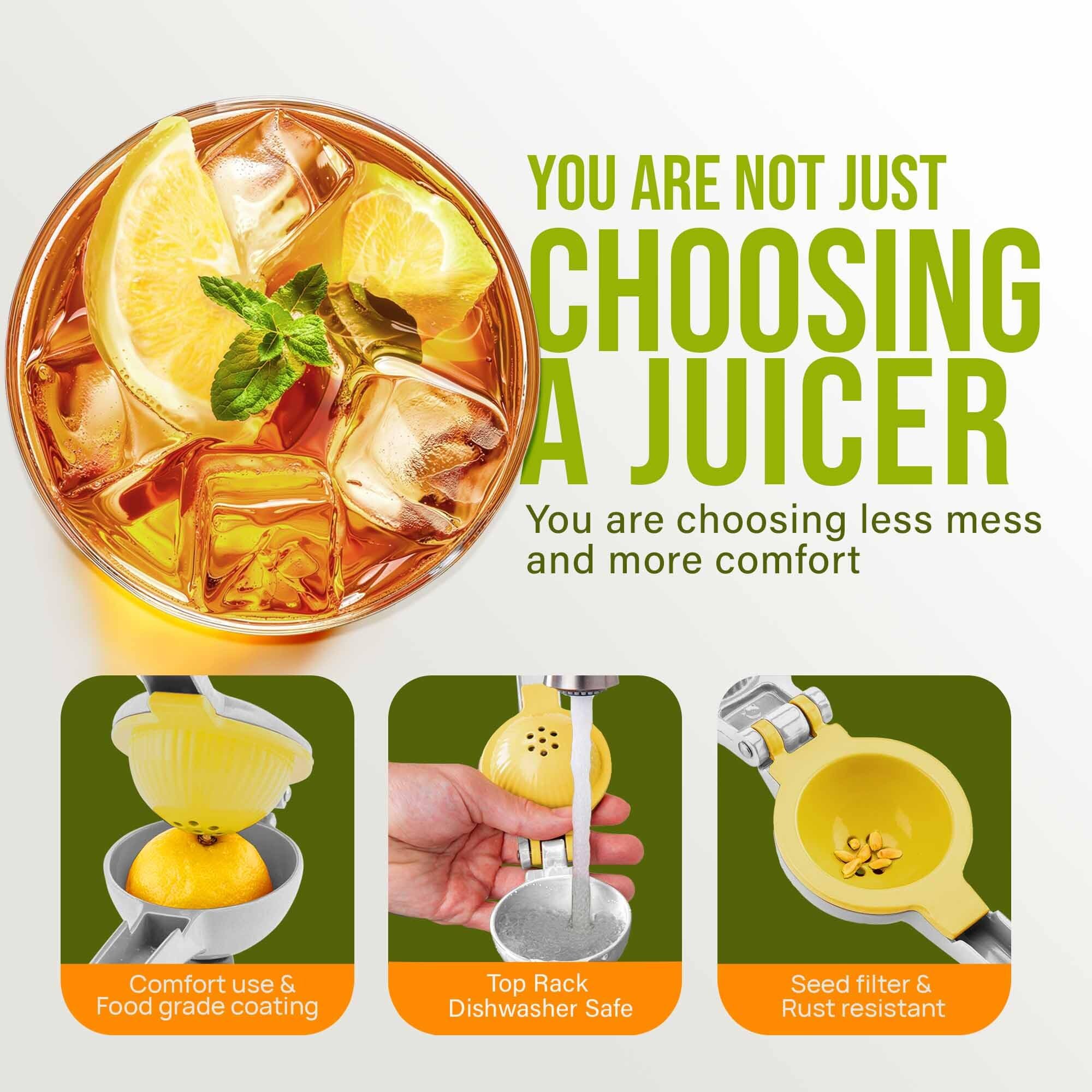 SQUEEZE OUT EVERY DROP OF JUICE: Our 2-in-1 lemon squeezer won’t waste a single drop from your favorite fruit! We have designed this lime juicer to be easy on hands. Watch limes, lemons, and small oranges beg for mercy, even with a soft squeeze. The holes at the bottom of the citrus juicer serve as a seed filter to prevent the pulp and seeds from getting in your way.