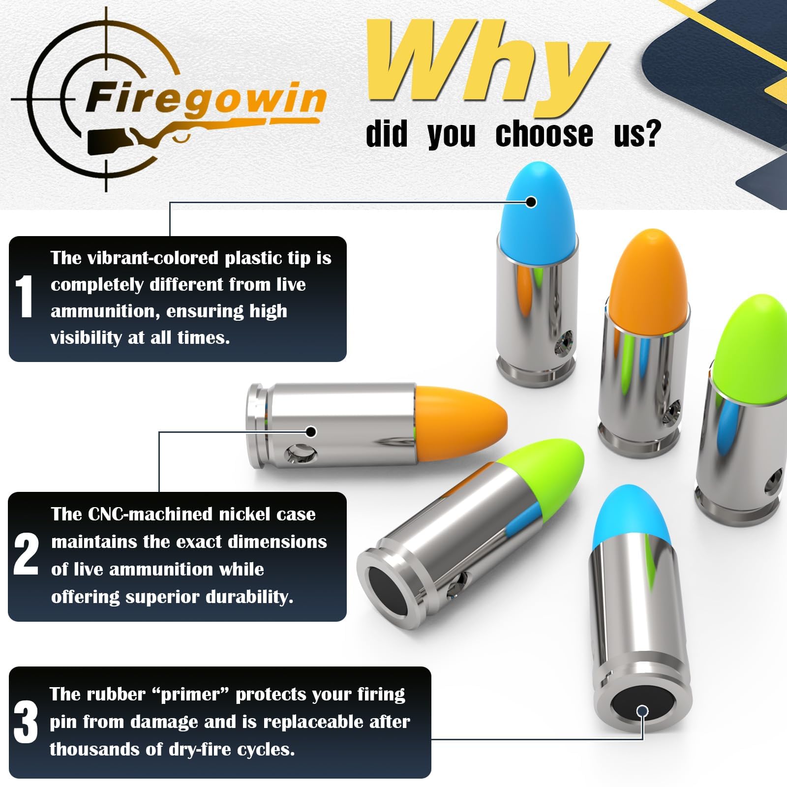 β Reusable & Long-Lasting β Unlike cheap plastic snap caps, FIREGOWINβs 9mm training rounds withstand thousands of cycles. The rubber primer system extends the life of your firearm during dry fire sessions.