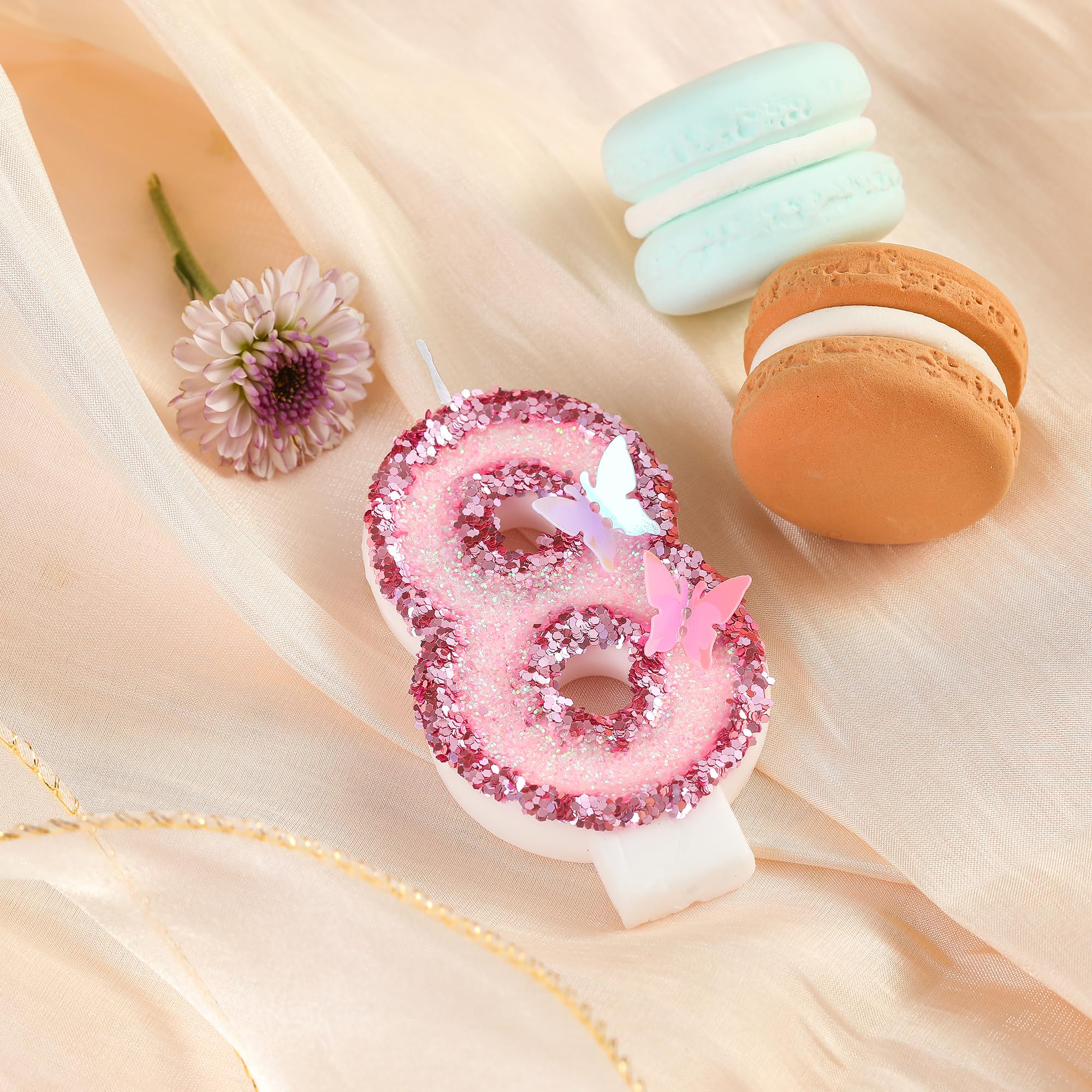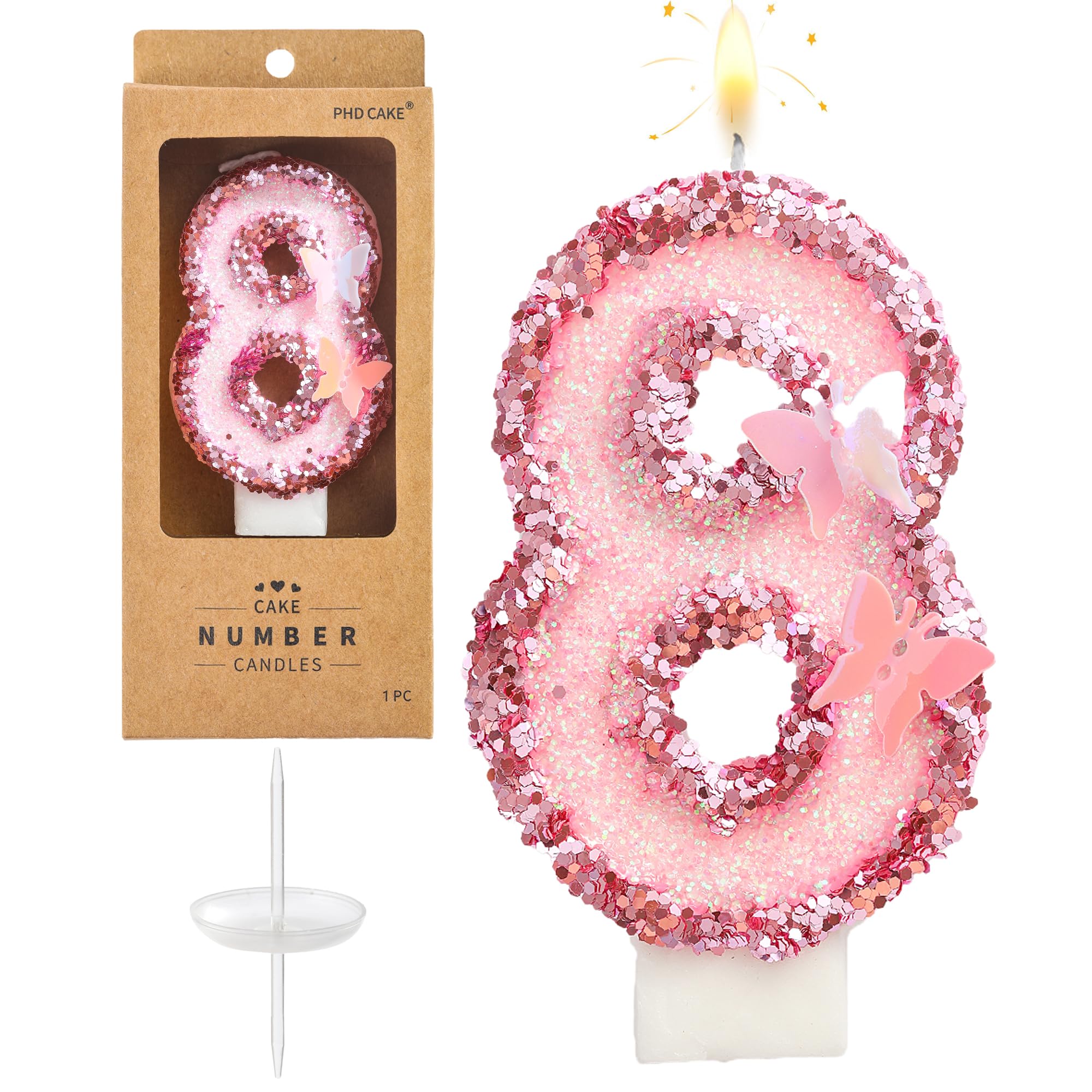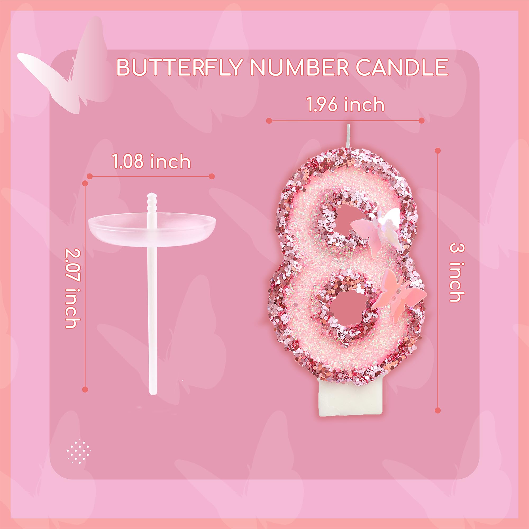 New: 3 Inch Large Pink Butterfly 8 Number Birthday Candle designed to make your cake a memorable celebration!