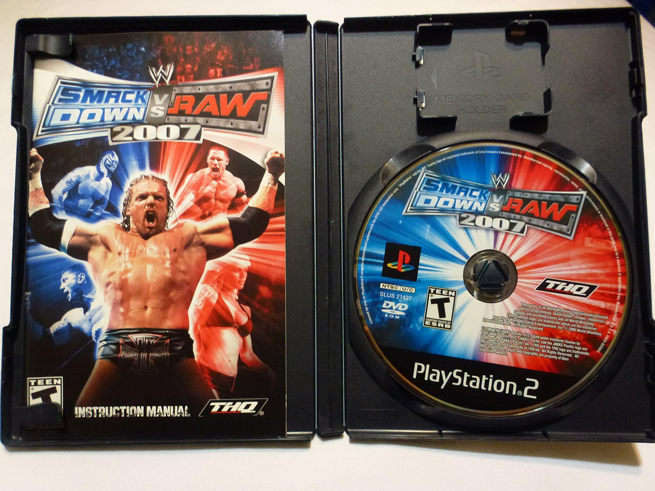 Product description WWE SmackDown Vs. RAW 2007 brings the intensity of life as a WWE Superstar to the next level. It delivers the next generation of WWE video games with key new features, incredible graphics and engaging, highly realistic WWE action in and beyond the ring. Players get unprecedented levels of choice and control, letting you fully experience the #1 wrestling franchise in the world. Incredible high definition graphics, updated rosters for both Raw and SmackDown, an expanded General Manager Mode, online multiplayer game play with voice chat support Amazon.com Get ready for another dose of WWE action with SmackDown vs. RAW 2007, the latest installment in THQ's popular wrestling series. WWE SmackDown vs. Raw 2007 brings the intensity of being a WWE superstar to the next level by offering players unprecedented levels of choice and control. As the number one wrestling franchise in the world, WWE SmackDown vs. Raw 2007 delivers the next generation of WWE video games with realistic WWE action in and beyond the ring. Experience WWE action like never before with the power of the PS3. View larger. You can even grab signs and weapons from the crowd. View larger. Get em' on the ropes! View larger. Things are intense out of the ring, too. View larger. This edition offers a number of new features and improvements over previous versions, including a new analog control system, incredible high-definition graphics, updated rosters for both Raw and SmackDown, an expanded general manager mode, online multiplayer game play with chat support, and more. Game Storyline An enhanced season mode provides multiple branching storylines and unprecedented levels of player choice. Meanwhile, experience the intensity of WWE fans in a brand new, fully loaded interactive fighting area. Players can take advantage of multiple weapons, including grabbing signs and weapons from the crowd. Gameplay The new analog control system makes fighting more realistic than ever with intuitive movement and new elements of control. In and out of the ring, dozens of user-controlled environmental hotspots let players take advantage of anything at their disposal to inflict damage on opponents in new and unique ways. Additionally, new high impact combination moves let players take the power of WWE Superstars into their own hands. Two categories of movesets are now determined by your weight class. Lighter wrestlers have access to martial arts-style moves, while heavier wrestlers have access to slower, but more powerful moves. Accordingly, a character can only lift or inflict damage on wrestlers one weight class heavier than them or less. A lot more interactivity in the arenas is included in this latest release. Signs, weapons, and other objects from the crowd can be used to beat down the opponent, while fighting within the crowd is also allowed. Don't forget the previously mentioned inclusion of environmental "hotspots" such as the steel steps, ring ropes, and scaffolding, which players can interact with (Note: crowd fighting and crowd interaction are not supported for all match types). Lastly, the graphics of this release have been immensely improved over previous releases. The game's audio system has also been overhauled and features new sound effects, not to mention new crowd chants and grunting from the wrestlers.