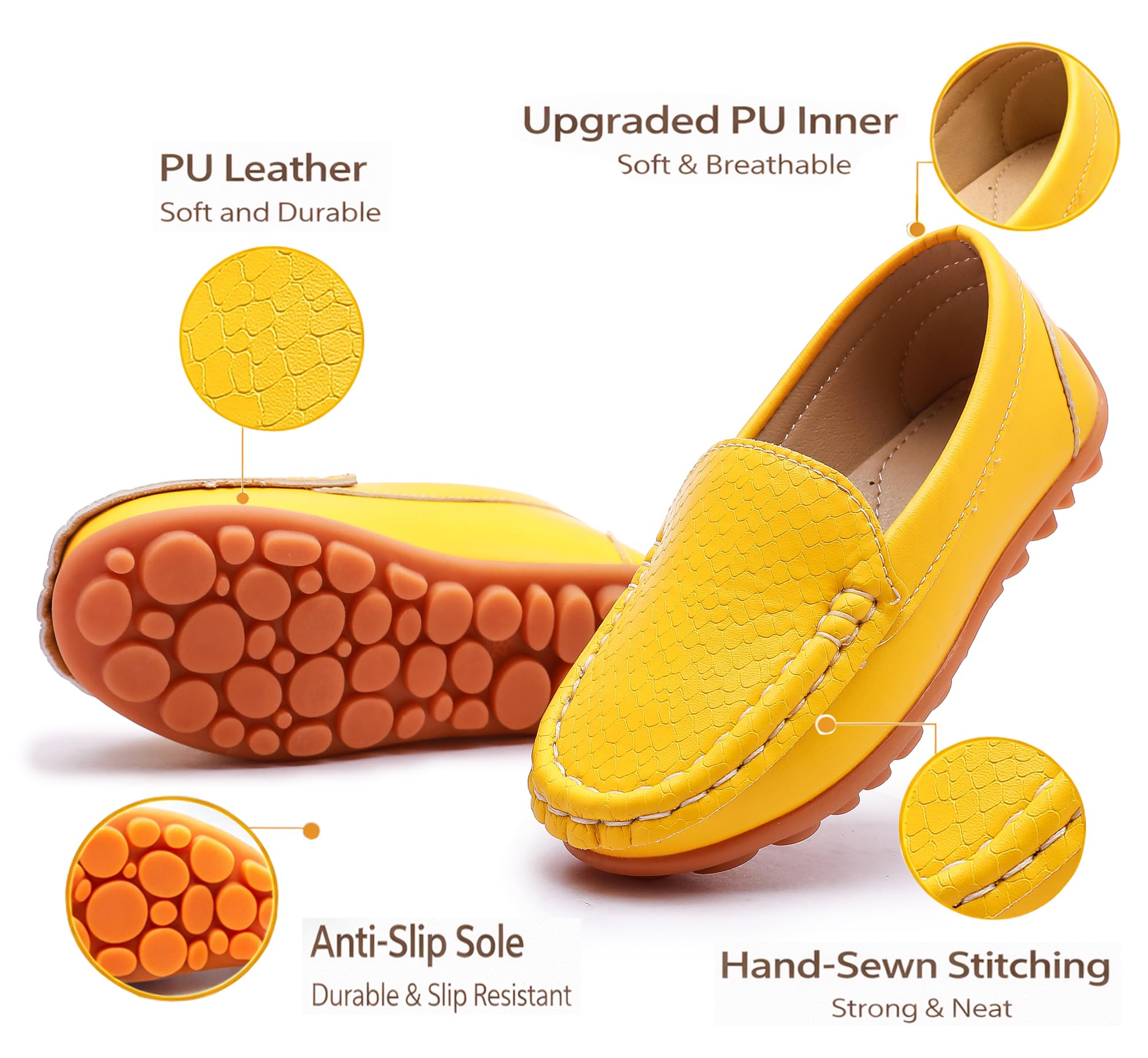 Premium PU Upper:High-quality PU leather upper with a classic textured design. Durable, smooth, and gentle on kids feet for daily wear.