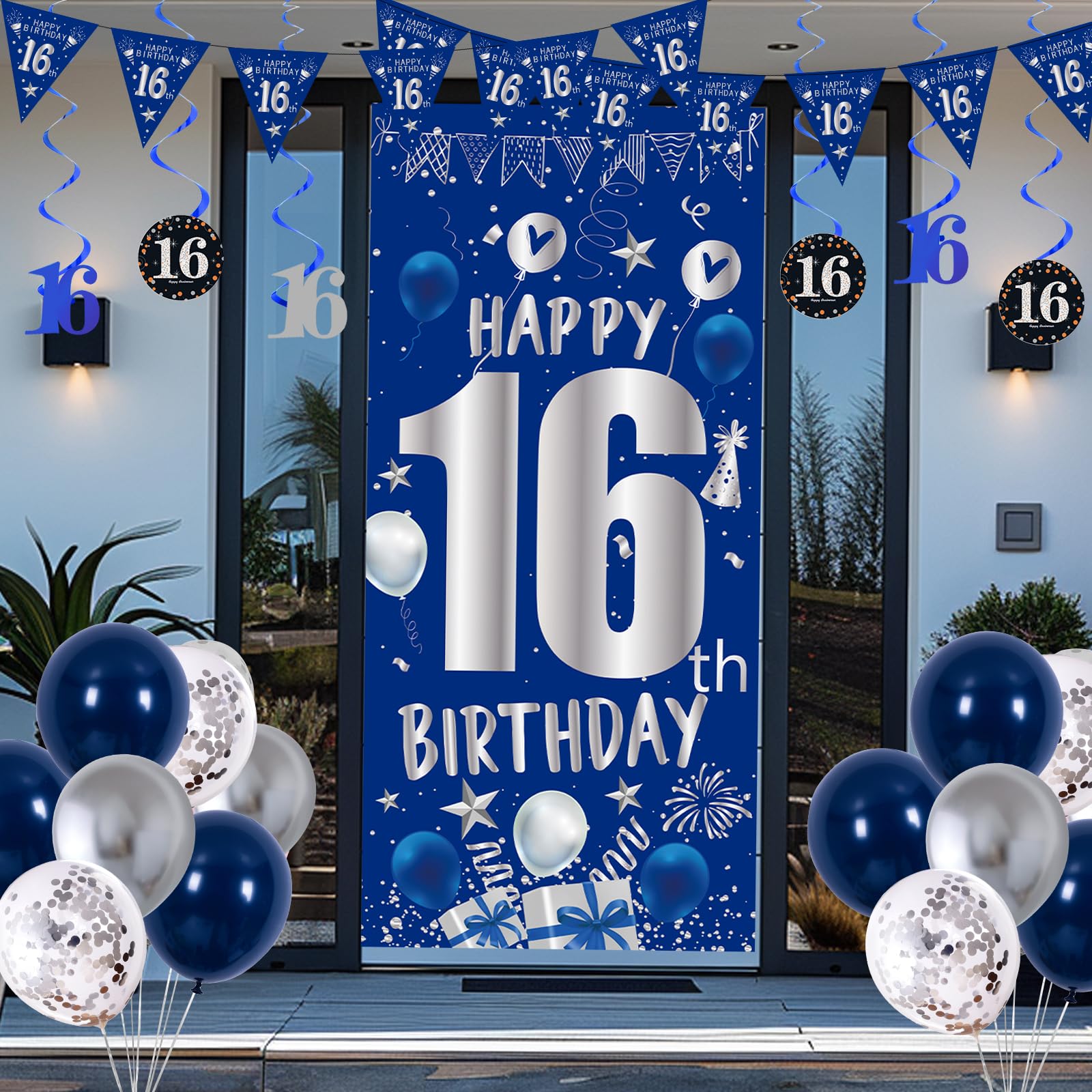 💙【Exclusive 16th Birthday Decorations for Boys and Girls】The happy 16th birthday decorations party kit for boys girls uses blue and silver as the birthday theme colors, easy to set up a stylish, sparkling and romantic birthday scene. The large "Happy 16th Birthday" sign on the birthday door banner is instantly eye-catching and impressive. Your son, your daughter or your grandkids will really enjoy it!