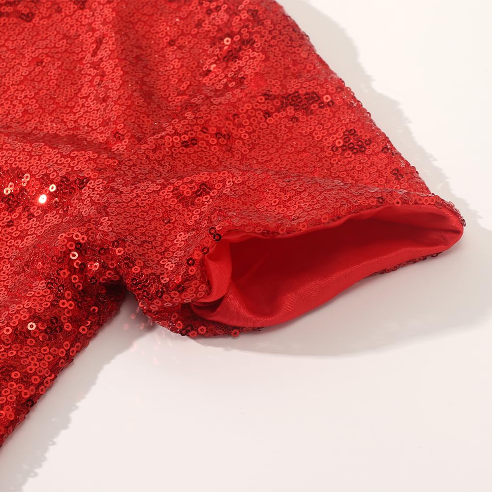 Sparkly sequin tops with V-neck, turn-down collar, fully sequined decoration makes shining and shimmering in the light or sunlight, inside soft satin lining to protect children's skin from scratches