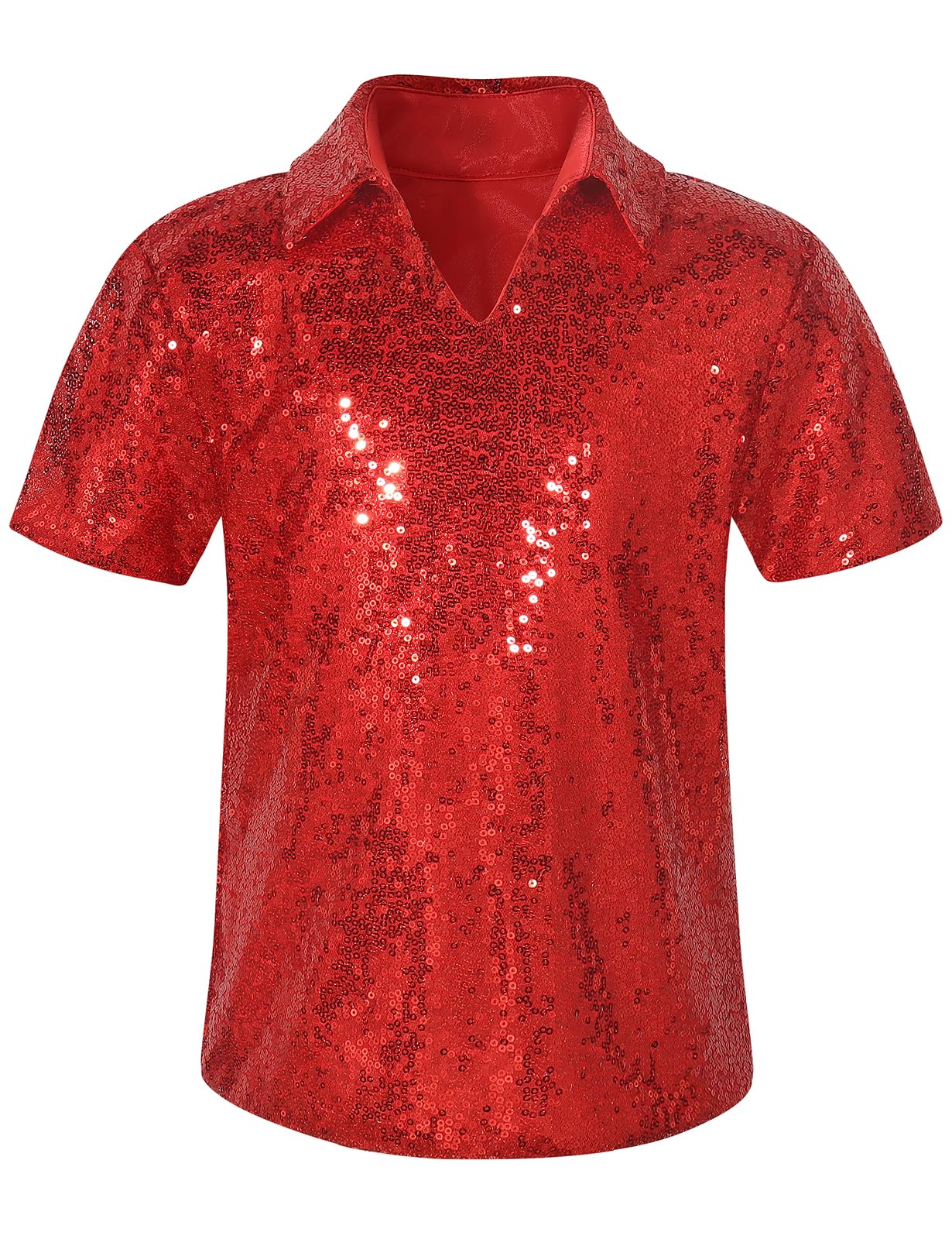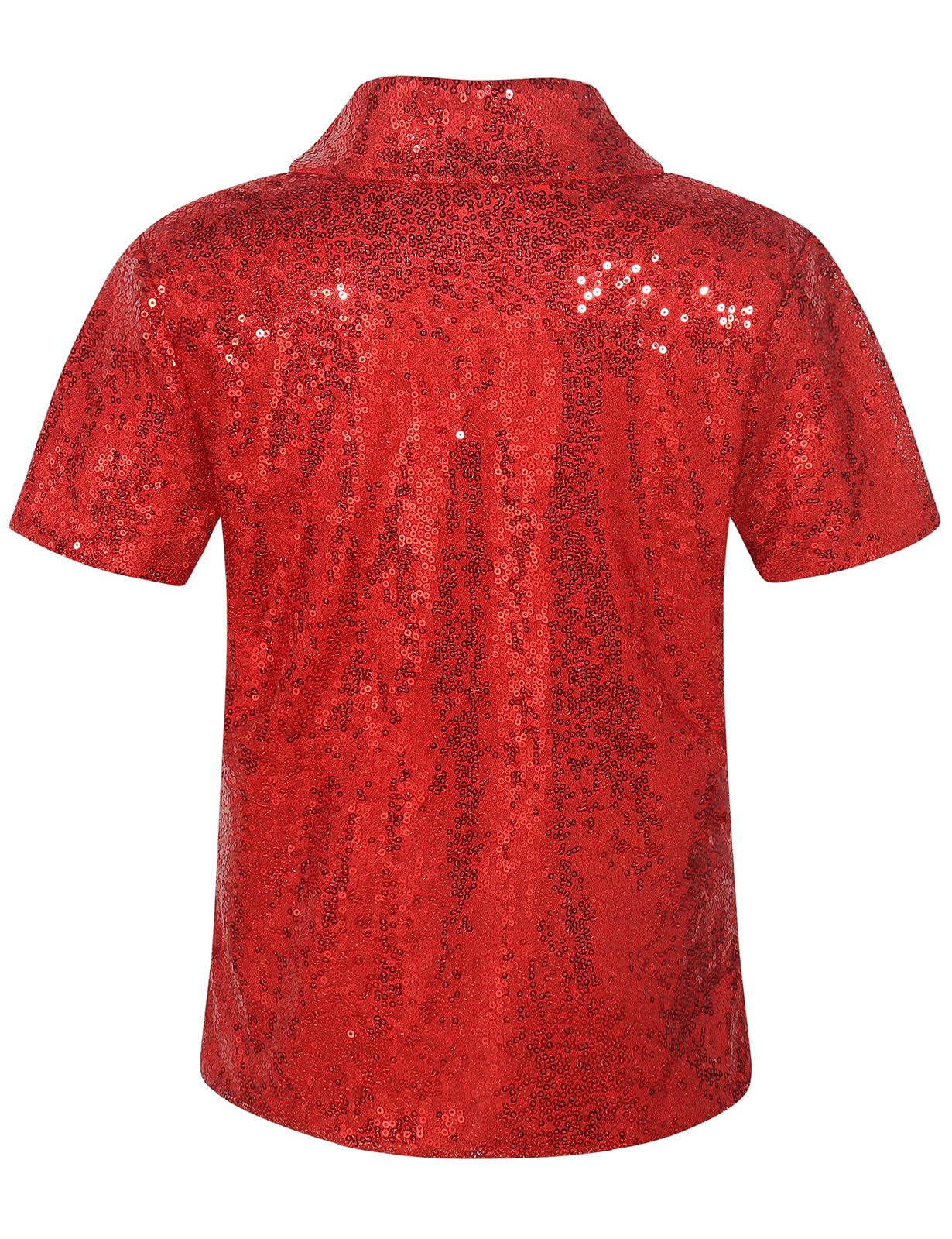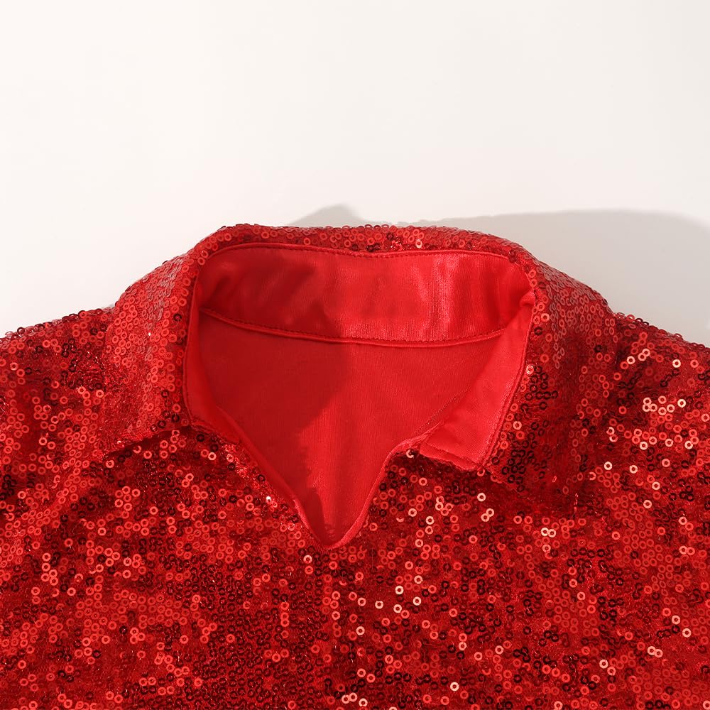 This kids shiny glitter shirt can match chino shorts, skinny pants, suit pants, slacks, jeans, etc., as you like, which creates a charming silhouette and adds to the overall dressy look