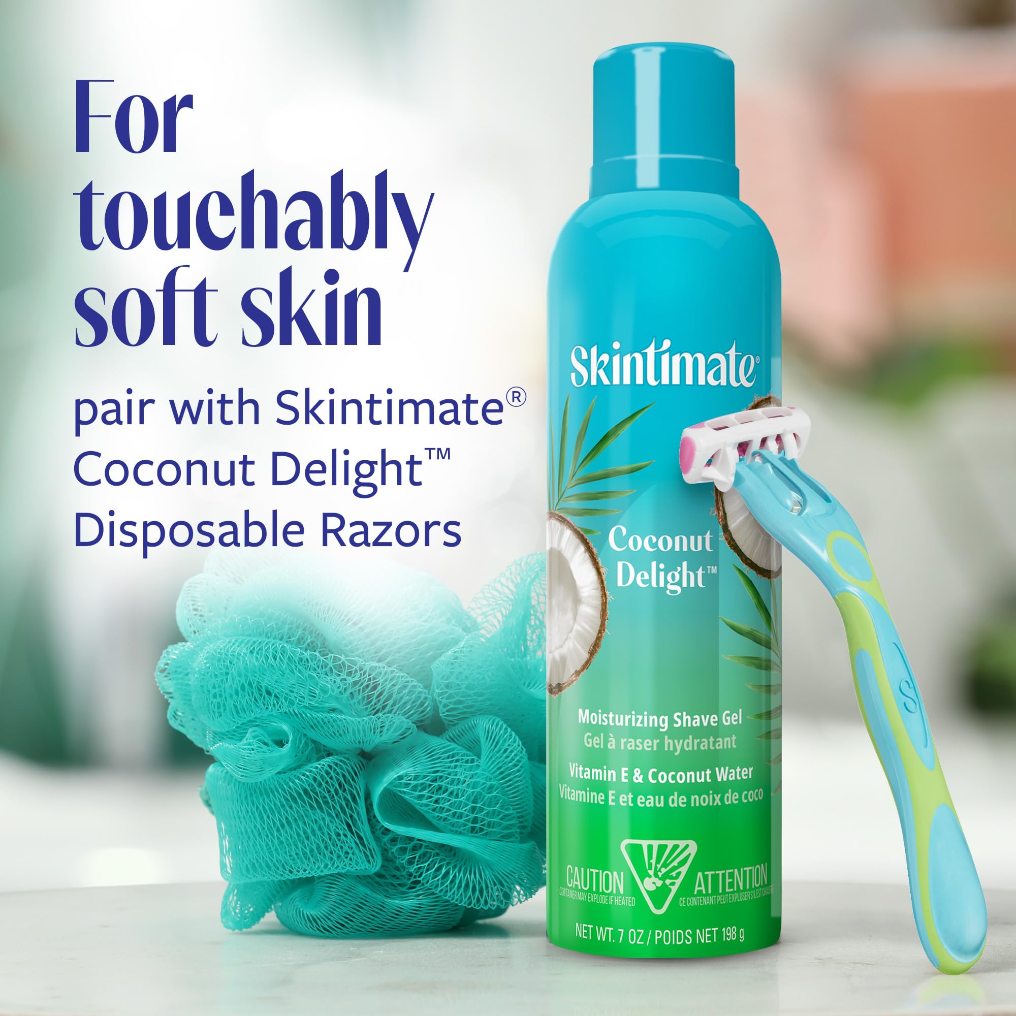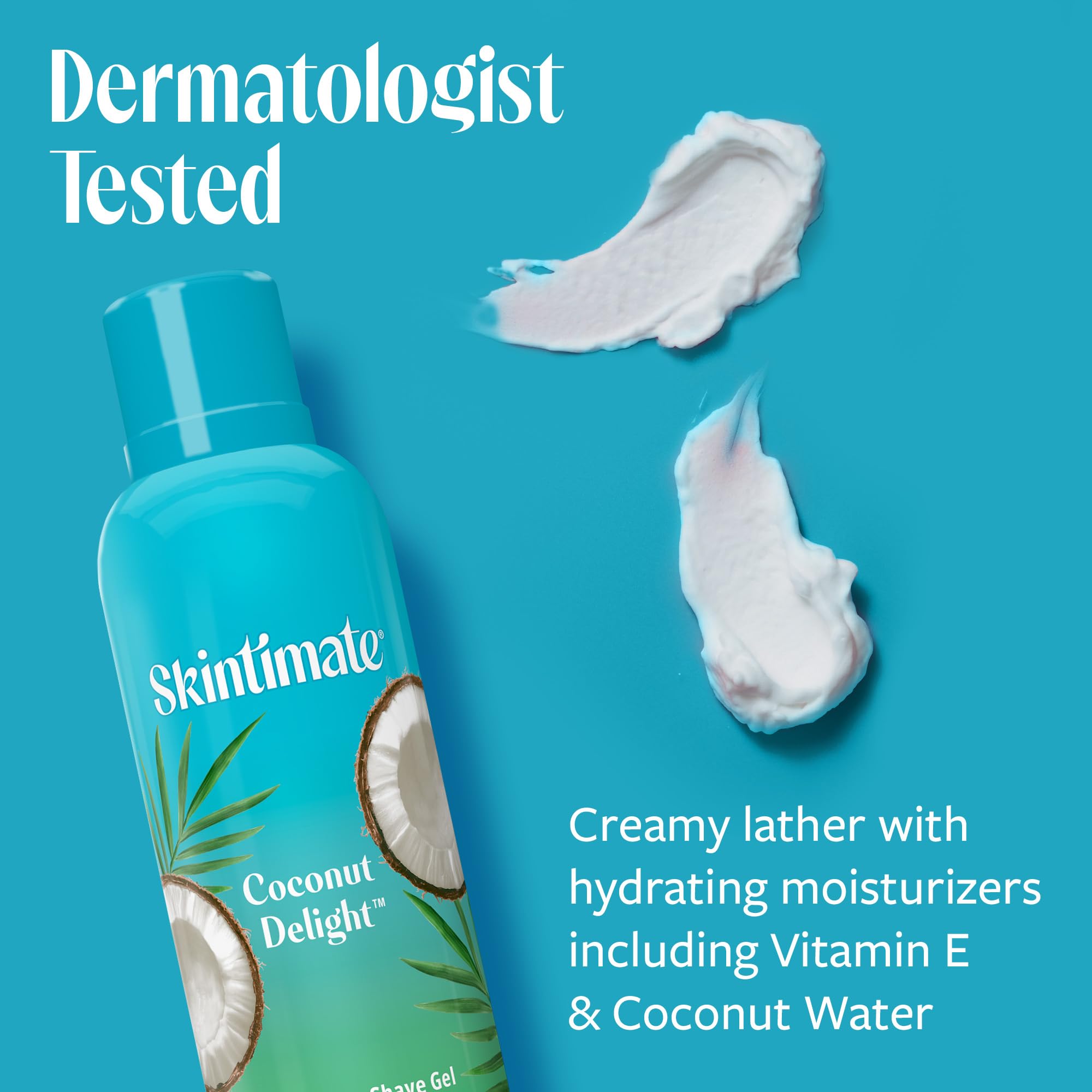 Indulge your senses with the Skintimate Coconut Delight Women's Shave Gel. The moisturizing shaving gel delivers a refreshing tropical coconut scent for a sense-drenching shave experience. The luxurious formula transforms into a rich creamy lather, ensuring your razor glides effortlessly and offering ultimate protection against nicks and irritation. Infused with hydrating moisturizers, including vitamin E and coconut water, this women’s shaving cream helps to replenish your skin's natural moisture, leaving it healthy-looking and smooth. The Skintimate shaving gel for women is dermatologist-tested and boasts a vegan formula, free from parabens, silicone, and sulfites, ensuring your skin receives the gentle care it deserves. For best results, pair with Skintimate Disposable Razors.