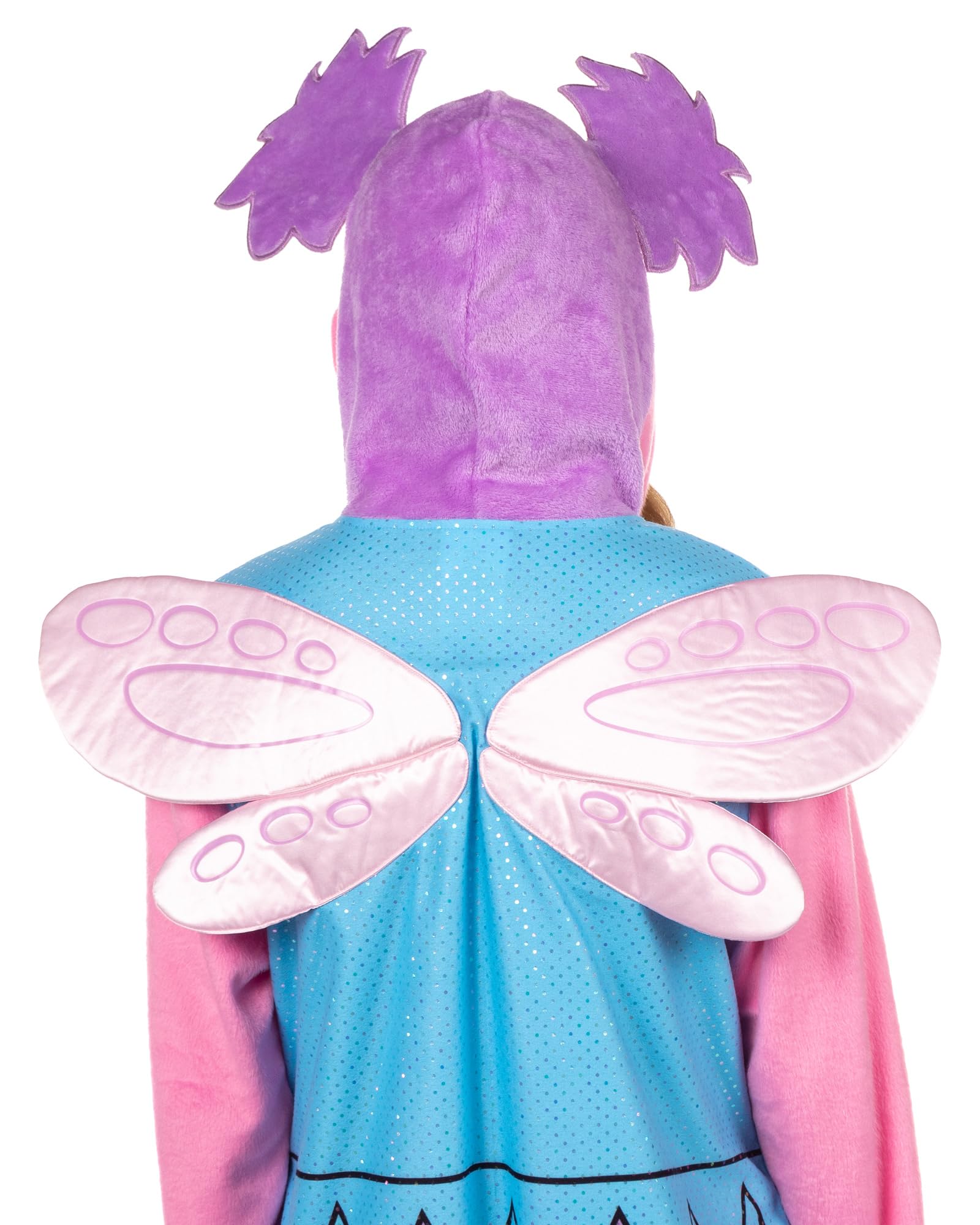 Distinctive 3D Character Details: For an expressive look, the hood features Abby's playful pigtails in 3D and embroidered eyes, nose, and freckles. The back is accented with 3D wings, while shiny dot details throughout the fabric replicate the feel of her outfit in a comfortable pajama style.
