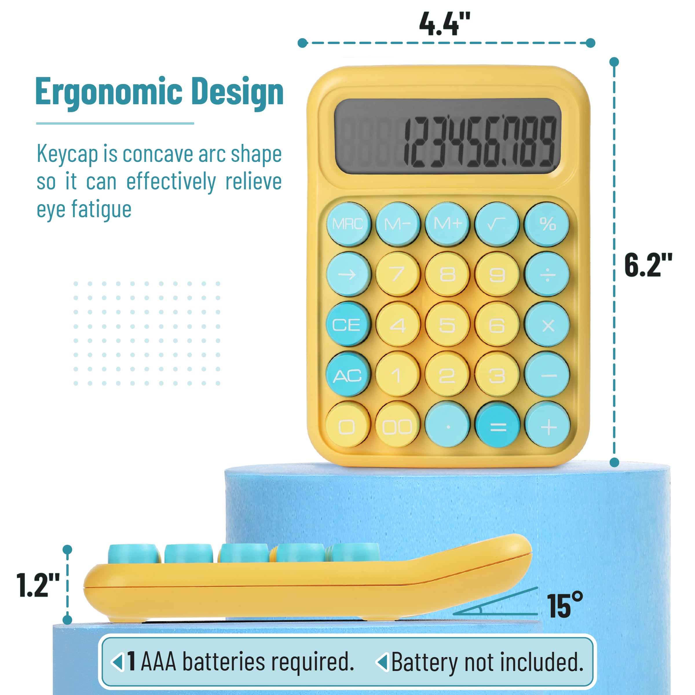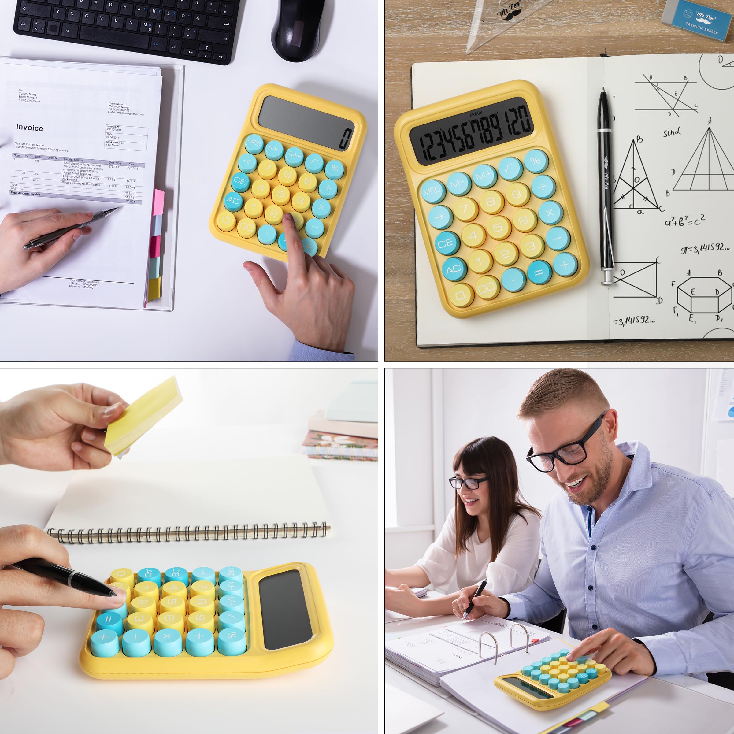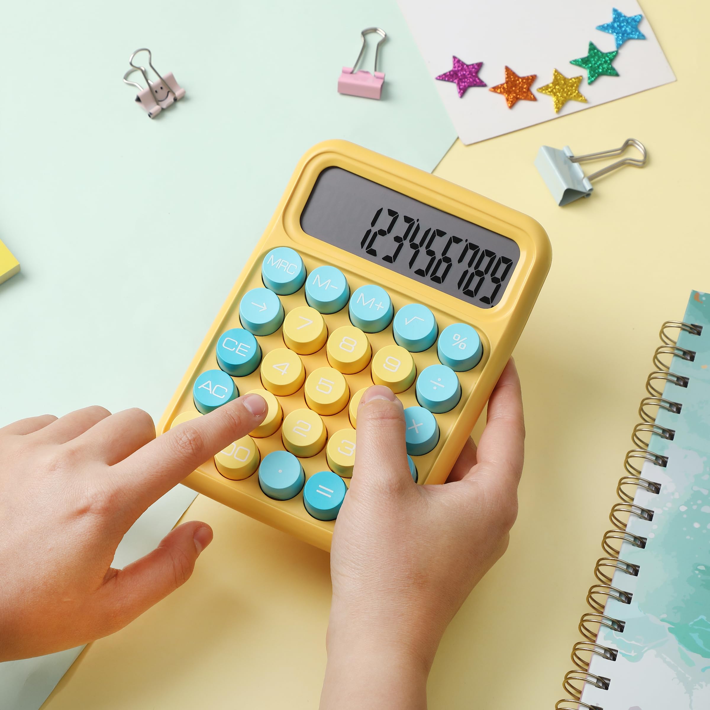 Mr. Pen mechanical switch calculator is equipped with 12 digits, making it ideal for handling calculations with precision and ease. It features a large LCD display that provides clear and easy-to-read numbers, ensuring accurate inputs and outputs at a glance. Designed with mechanical switches and round, colorful keys, this calculator offers a satisfying tactile feel and an eye-catching aesthetic. Perfect for both professionals and students, it’s lightweight and portable, making it suitable for use at home, school, or the office. Operating on just one AAA battery (not included), this calculator is designed with an automatic shutdown feature that activates after 10 minutes of inactivity, conserving battery life and ensuring longevity.